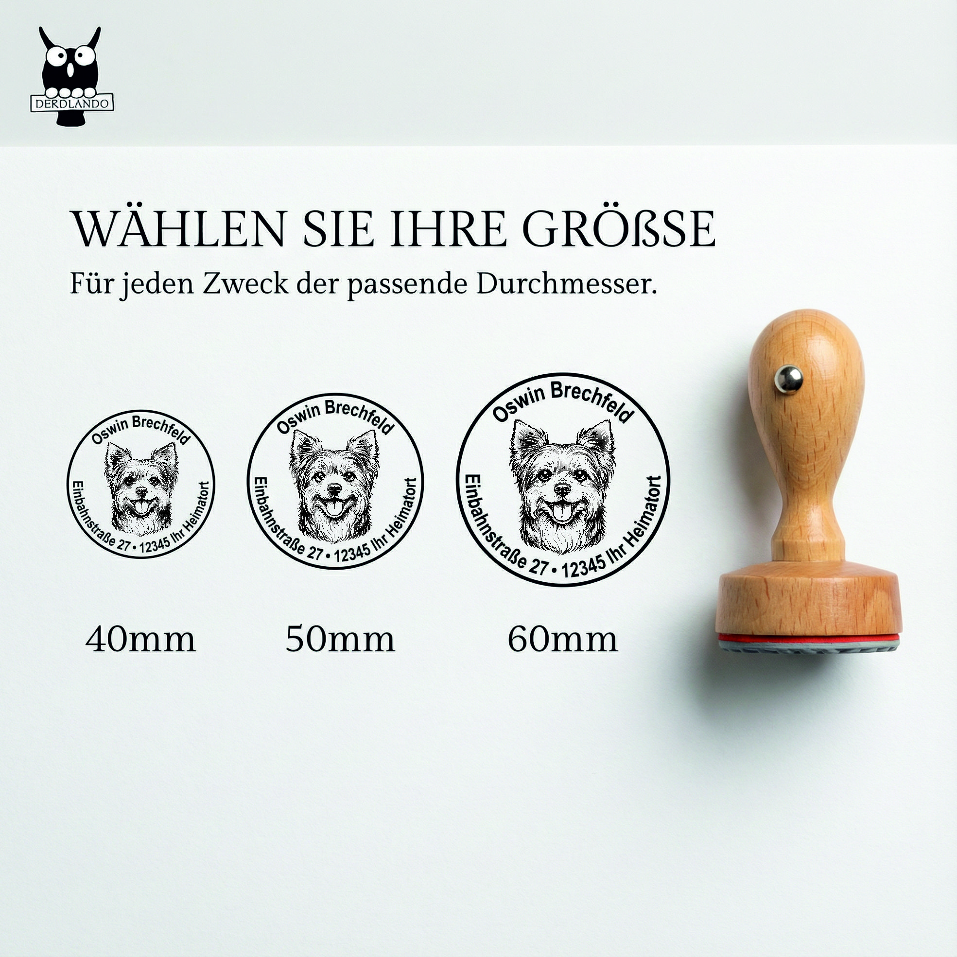 Stempel Yorkshire Terrier personalisiert – Hund Holzstempel mit Name & Adresse