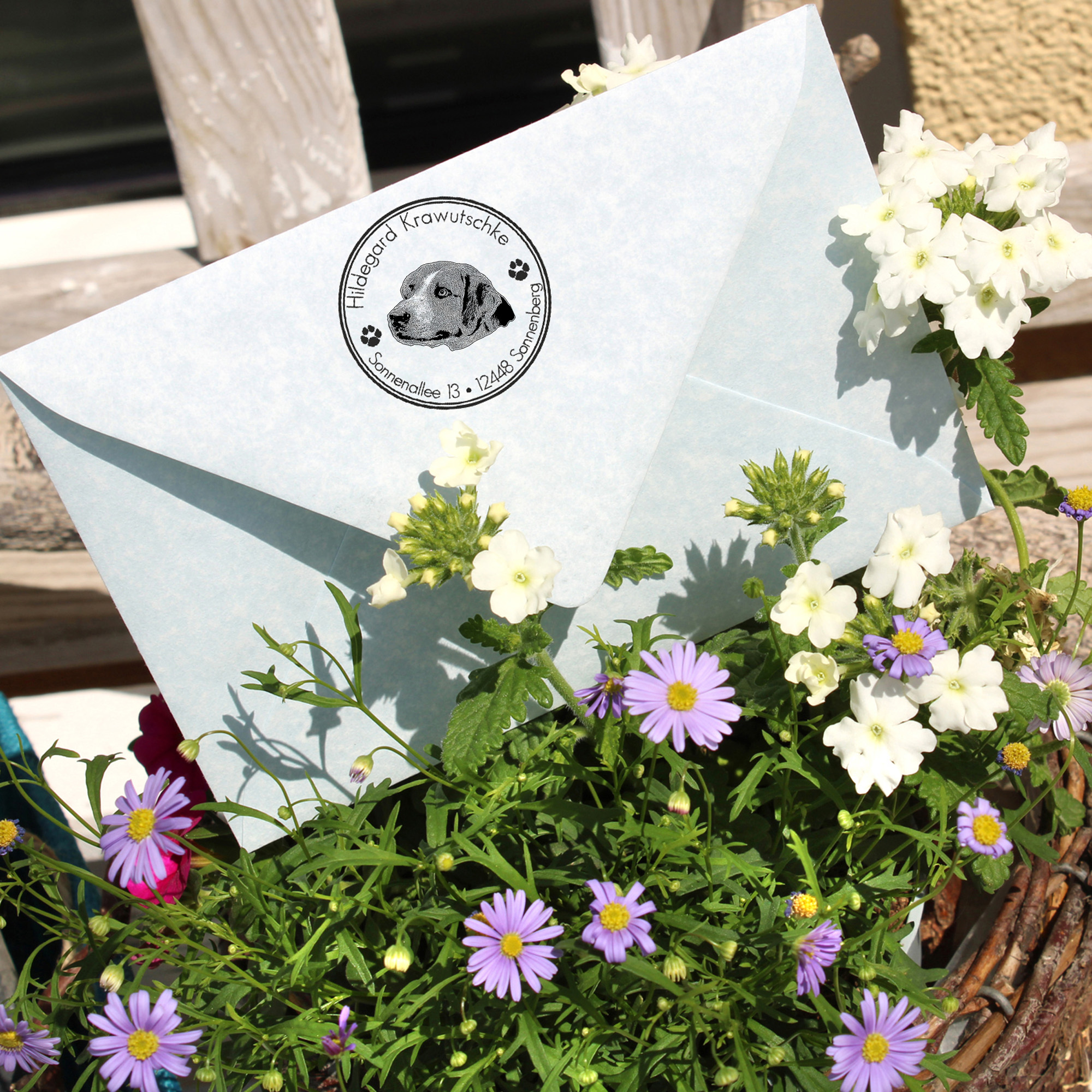 Unser runder Adressenstempel aus Holz mit einem süßen Hundemotiv ist die perfekte Lösung, um Ihre Post auf stilvolle Weise zu personalisieren. Dieser personalisierte Stempel ermöglicht es Ihnen, Ihre Adresse oder einen individuellen Wunschtext nach Ihren Wünschen anzupassen und sorgt so für einen einzigartigen Look Ihrer Briefe und Pakete.