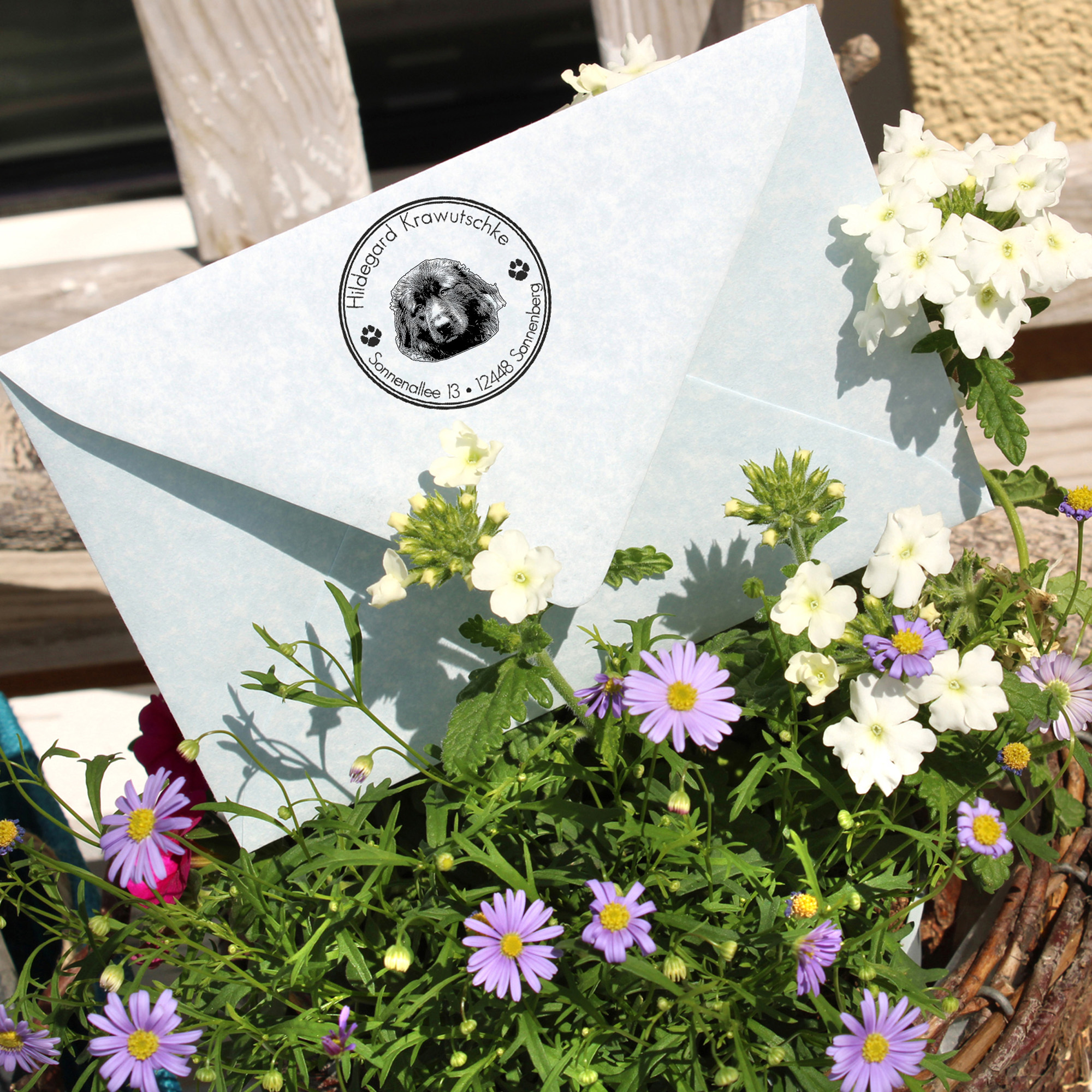 Stempel personalisiert Serra De Estrela Berghund Hund Hunde rund 40mm Adressstempel Holzstempel