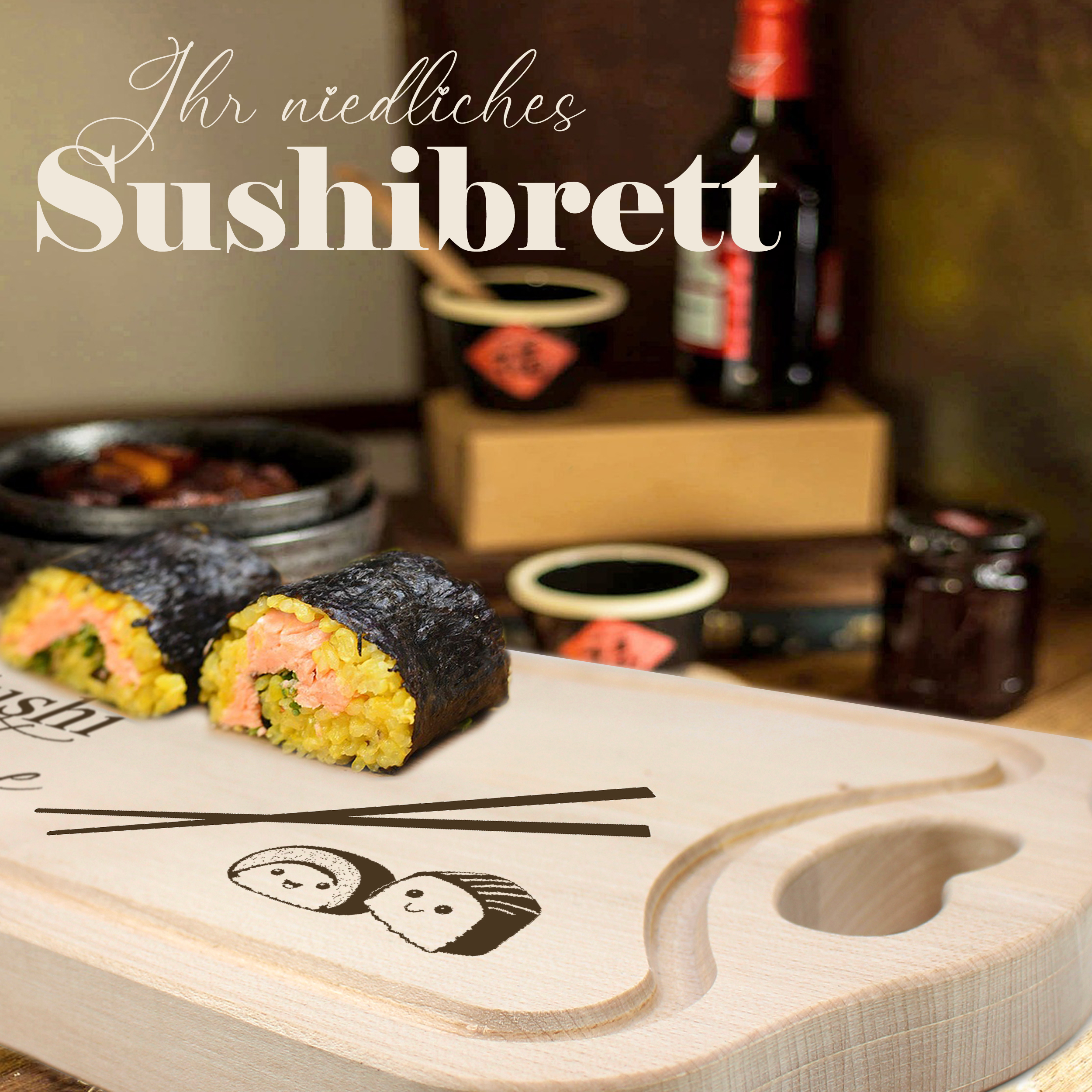 Originelle Geschenkidee für Genießer: Ob zum Einzug, Geburtstag, Valentinstag oder als Mitbringsel – dieses Sushi Brett ist ein persönliches Geschenk für Sushi Fans, Hobbyköche und Foodies.