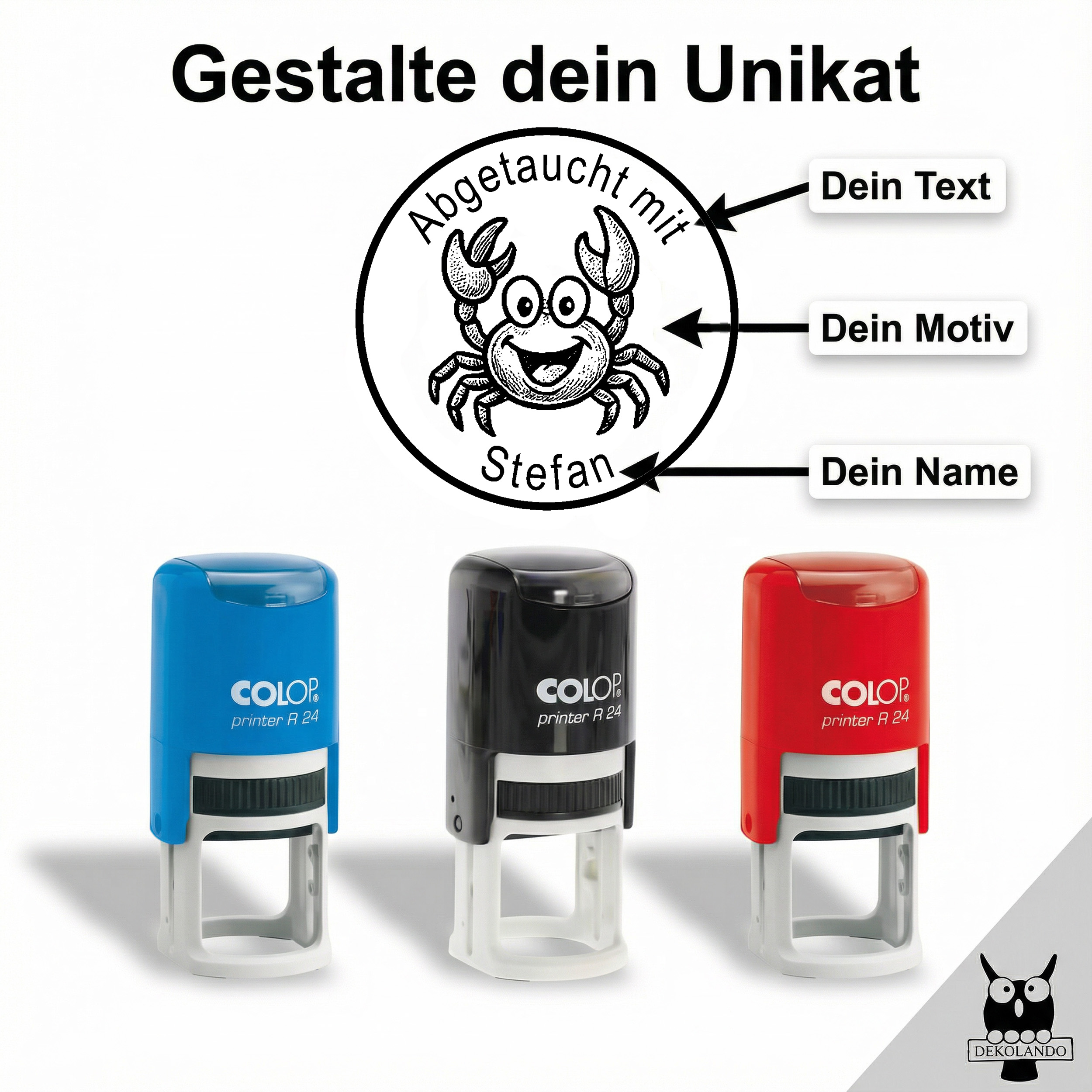 - Taucherstempel Krabbe Krebs 24x24 mm – personalisierte Stempel mit Name und Text, runder selbstfärbender Stempel für Taucherlogbuch, Tauch-logbuch, Tauchbuch & Dive Logbuch, perfektes Motiv für Taucher beim Tauchen.