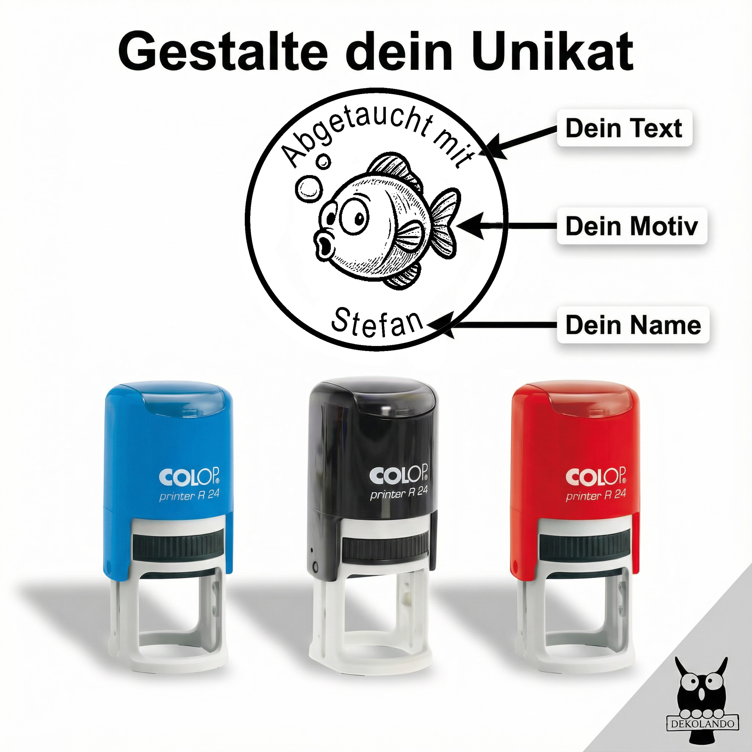 - Taucherstempel Niedlicher Fisch 24x24 mm – personalisierte Stempel mit Name und Text, runder selbstfärbender Stempel für Taucherlogbuch, Tauch-logbuch, Tauchbuch & Dive Logbuch, perfektes Motiv für Taucher beim Tauchen.