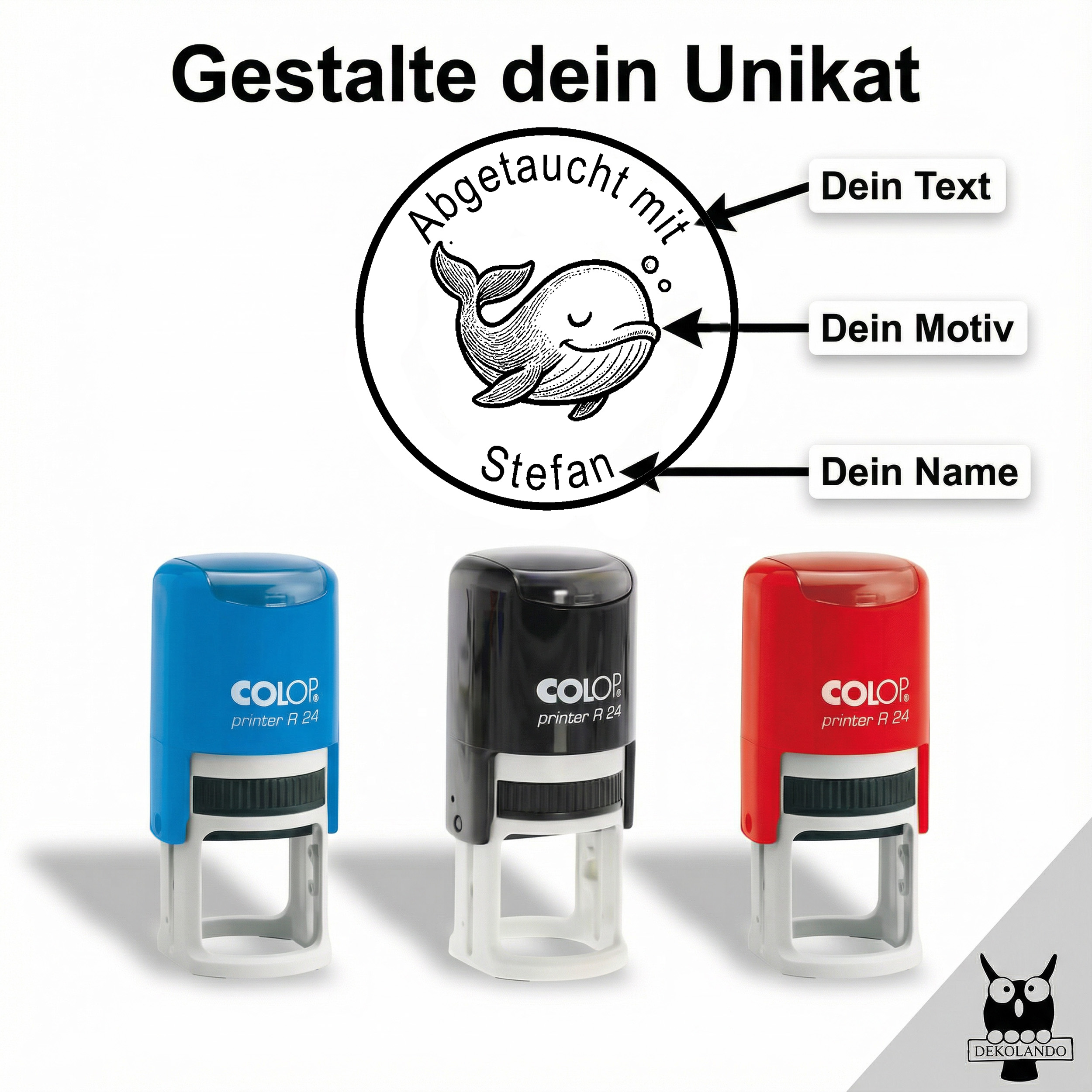 - Personalisierte Gestaltung – personalisiert rund mit Wunschtext oben und personalisierter Name unten, individueller Tauchstempel mit Motiv, ideal als persönlicher Stempel für dein Logbuch.