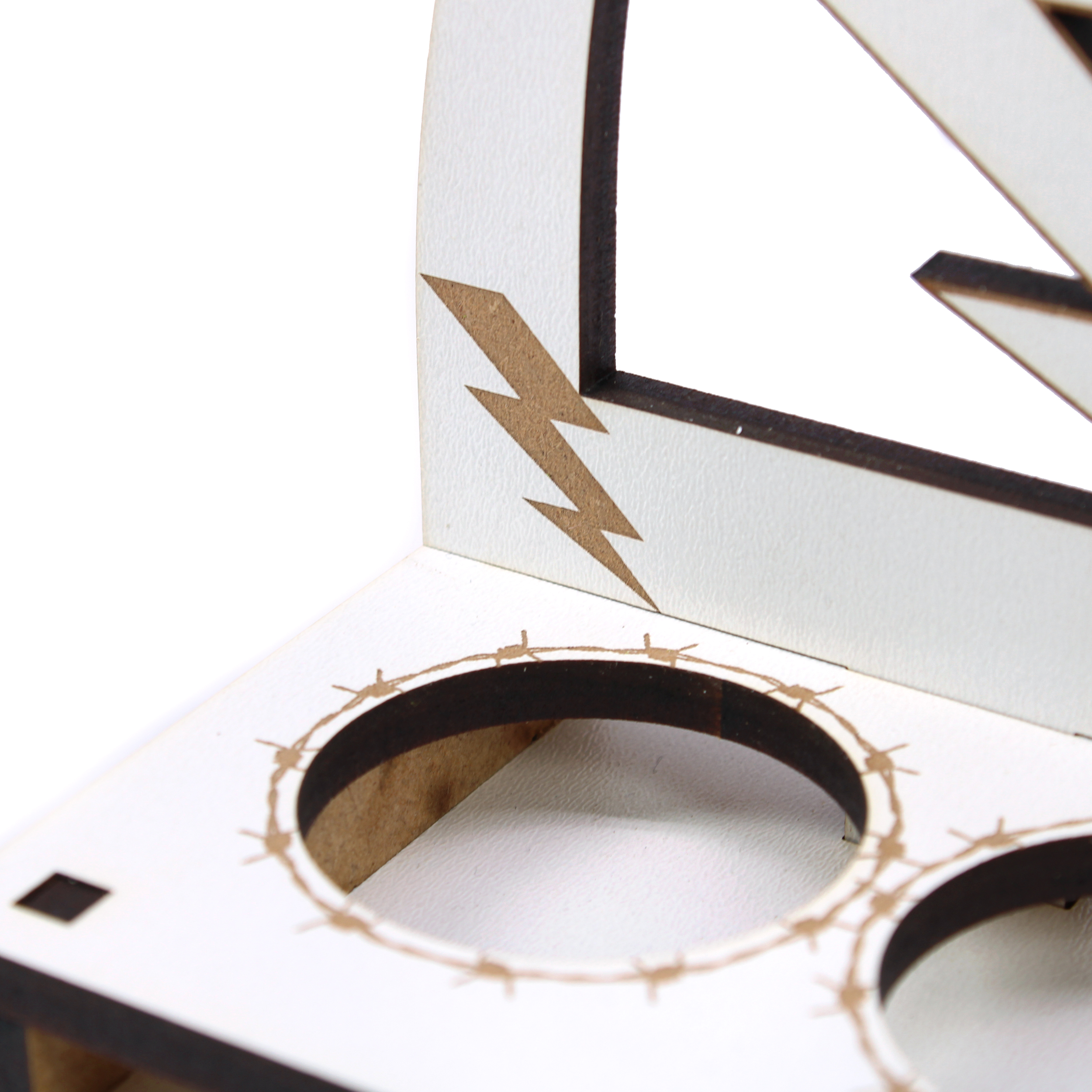 - HDF mit brauner Lasergravur – Stabiler HDF-Aufsteller mit detailreicher, kontrastreicher CO₂-Lasergravur. Warmer Braunton auf hellem Grund für edlen Handmade-Look und klare Konturen.