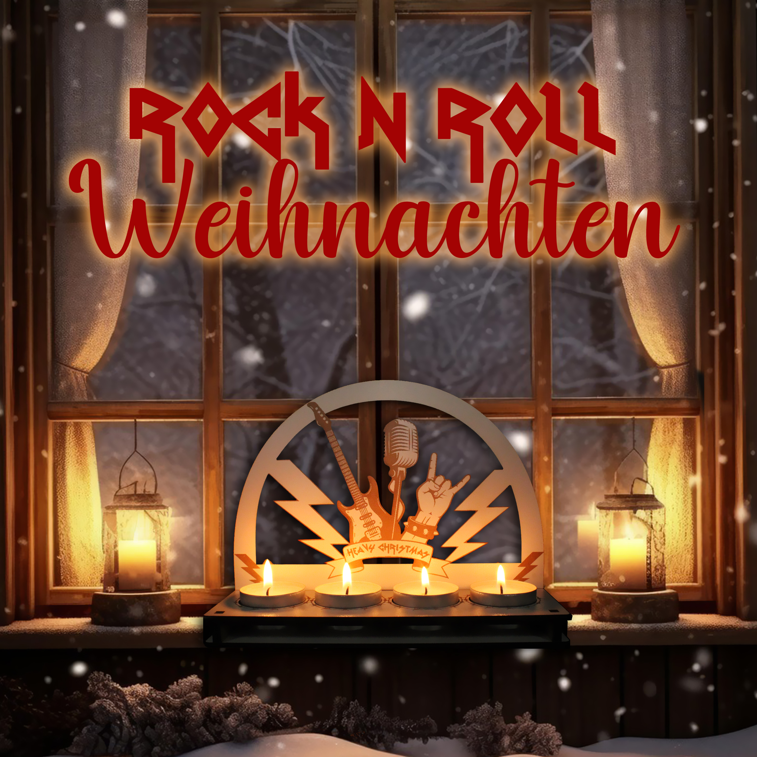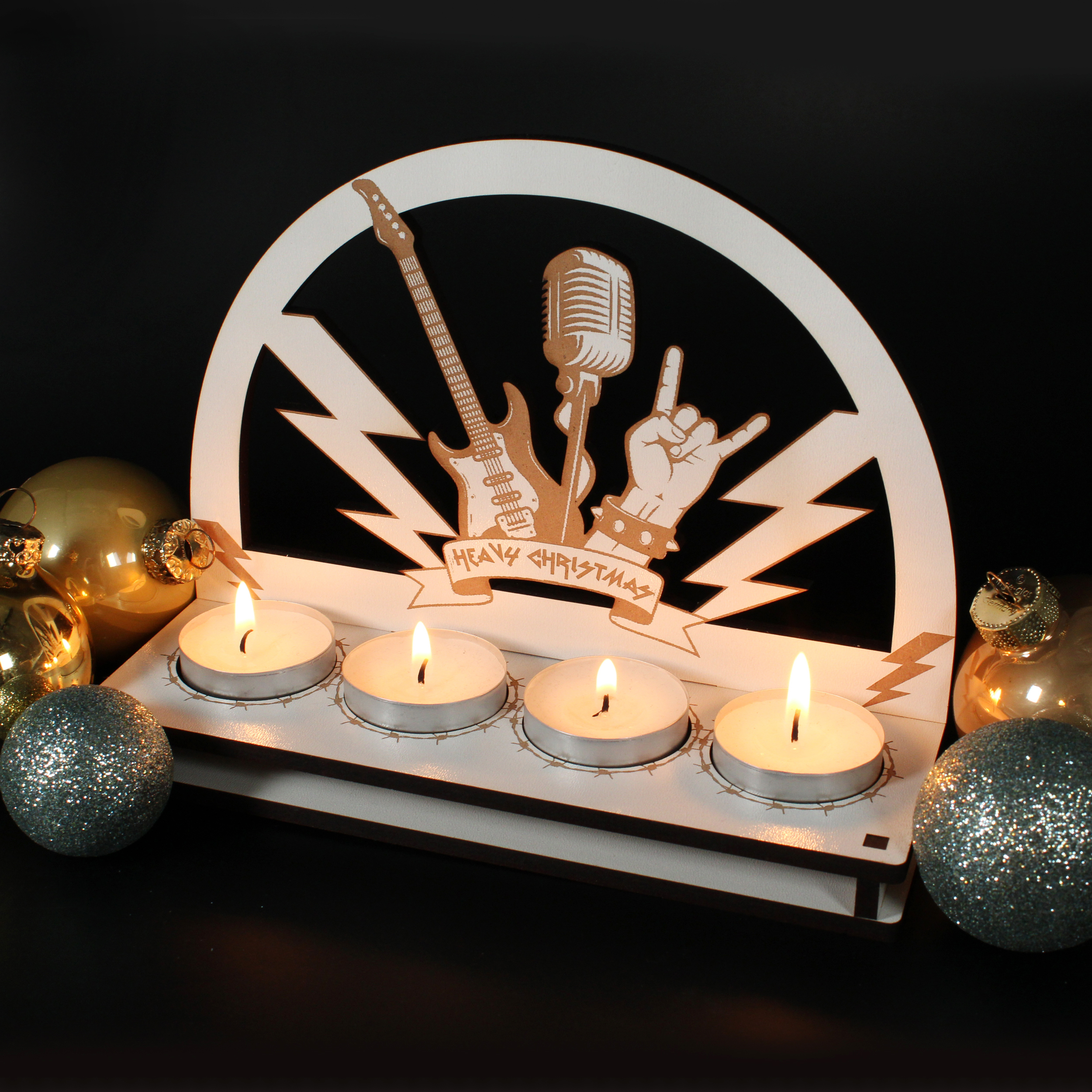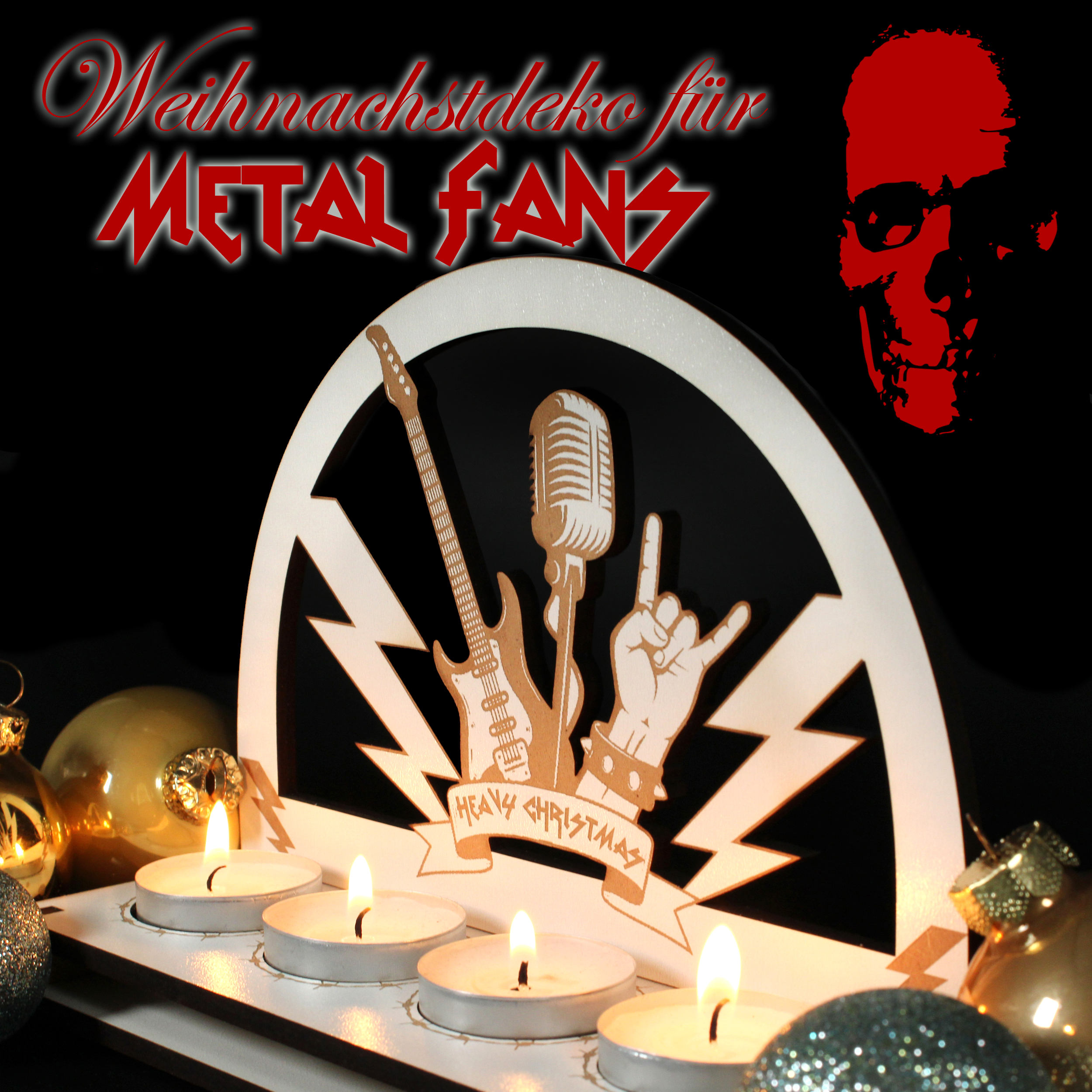 - Heavy Christmas Teelichthalter – Adventskranz im Schwibbogen-Design für 4 Teelichter. Rockige Weihnachtsdeko für Metal Fans, Musiker & Rocker – stimmungsvoll und außergewöhnlich.