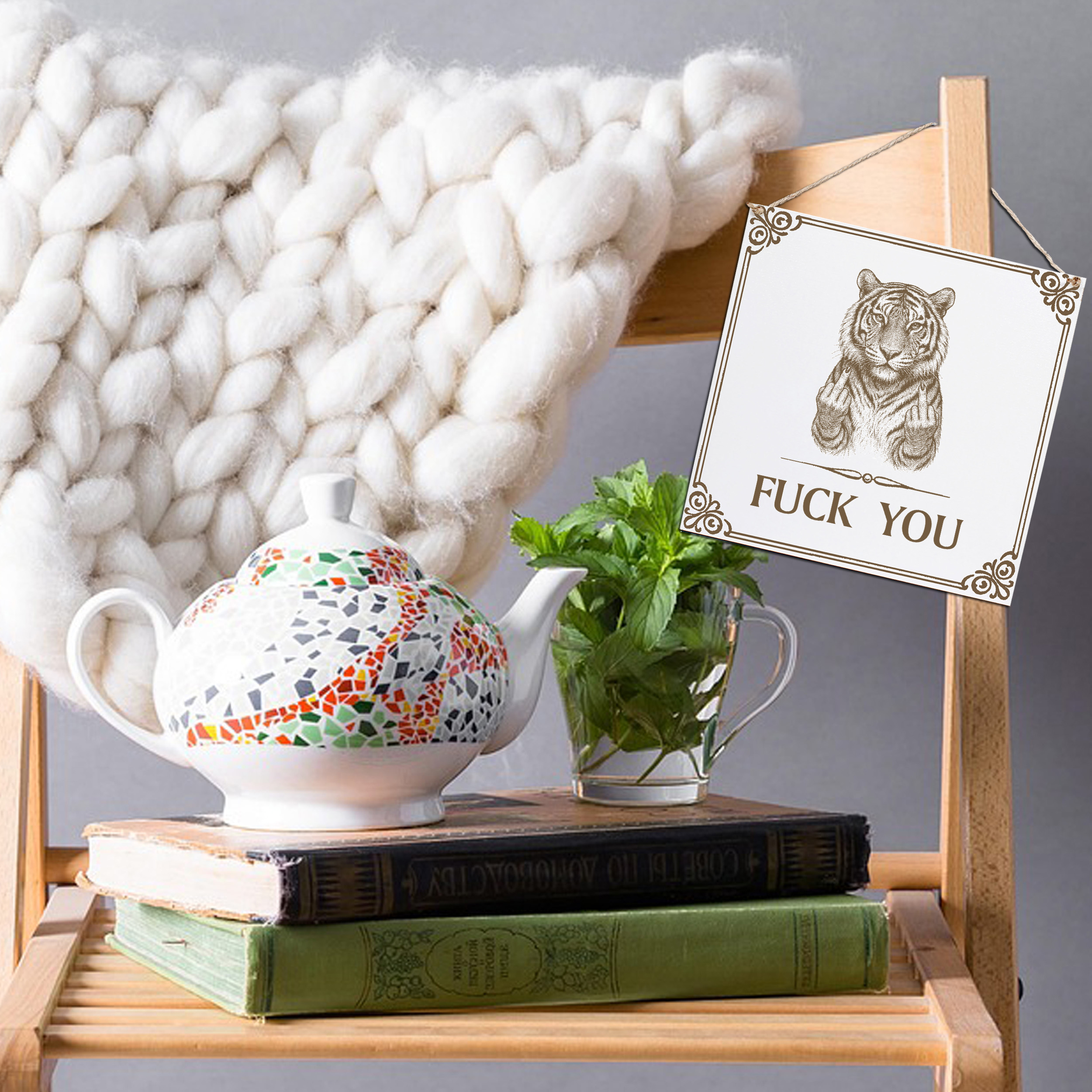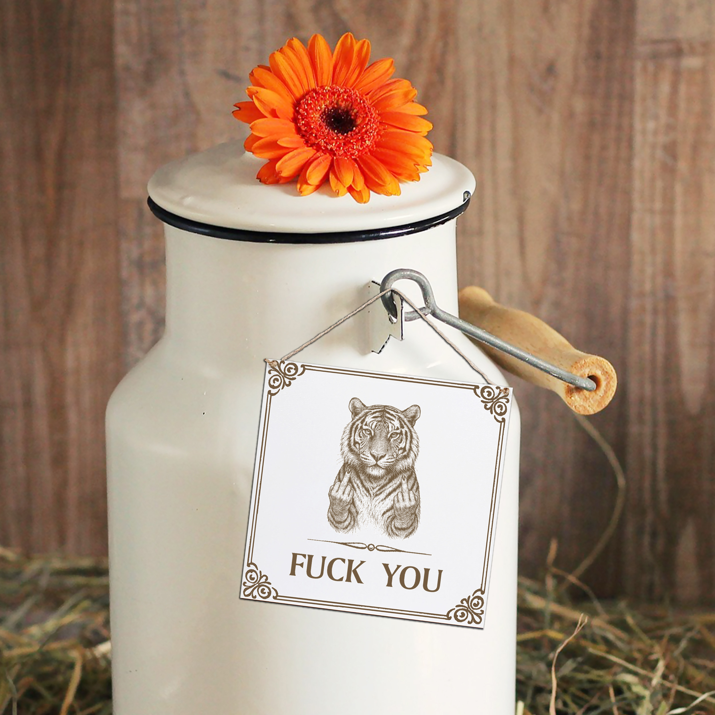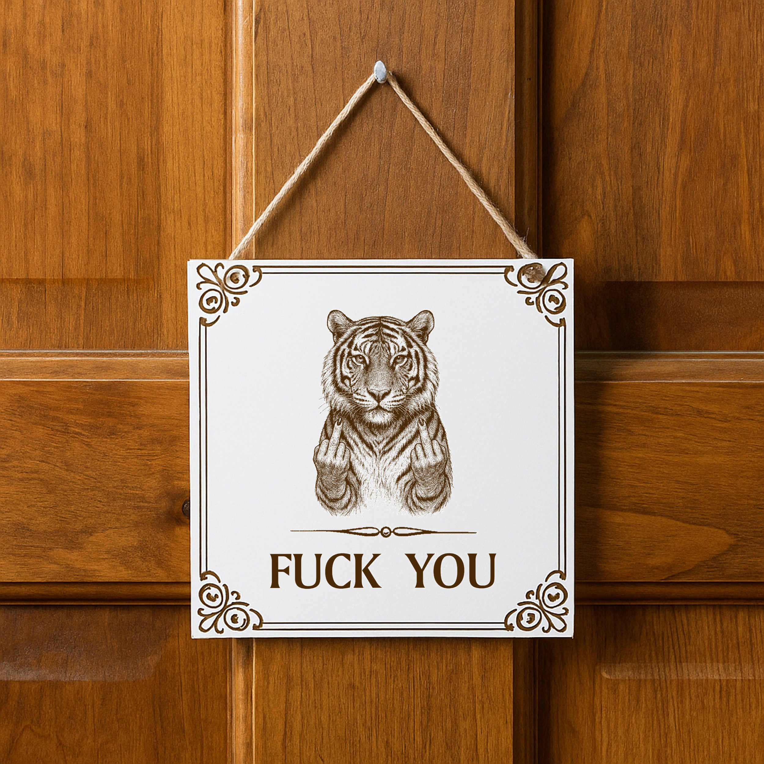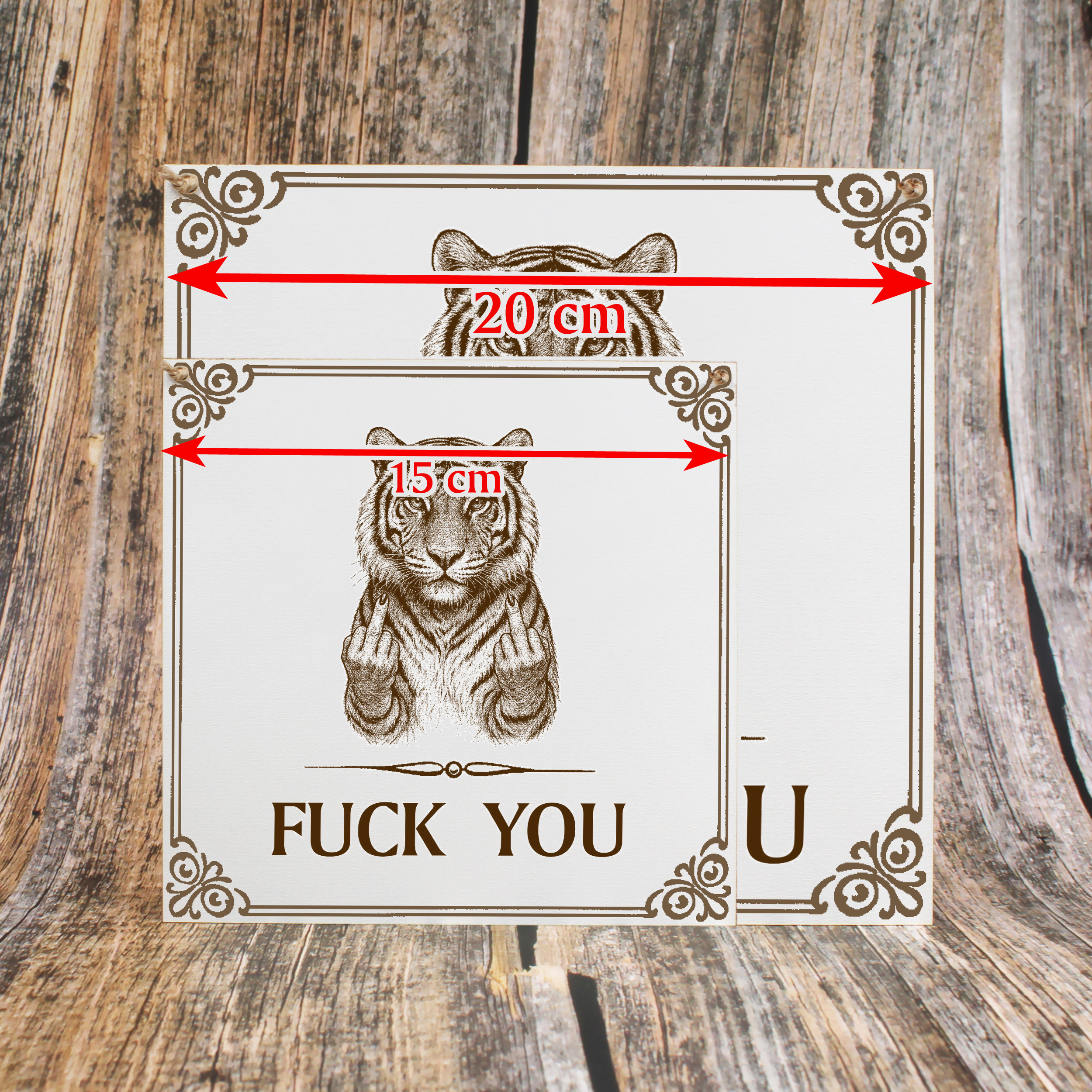 Tiger Wandschild „Fuck You“ – Weißes HDF-Dekoschild 15×15 cm (auch 20×20 cm)