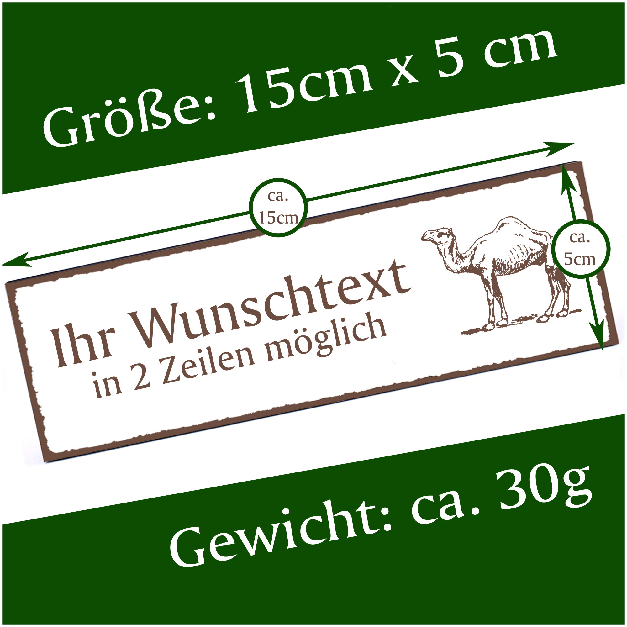 Türschild Dromedar Namensschild personalisiert mit Gravur - 150mm x 50mm - selbstklebend
