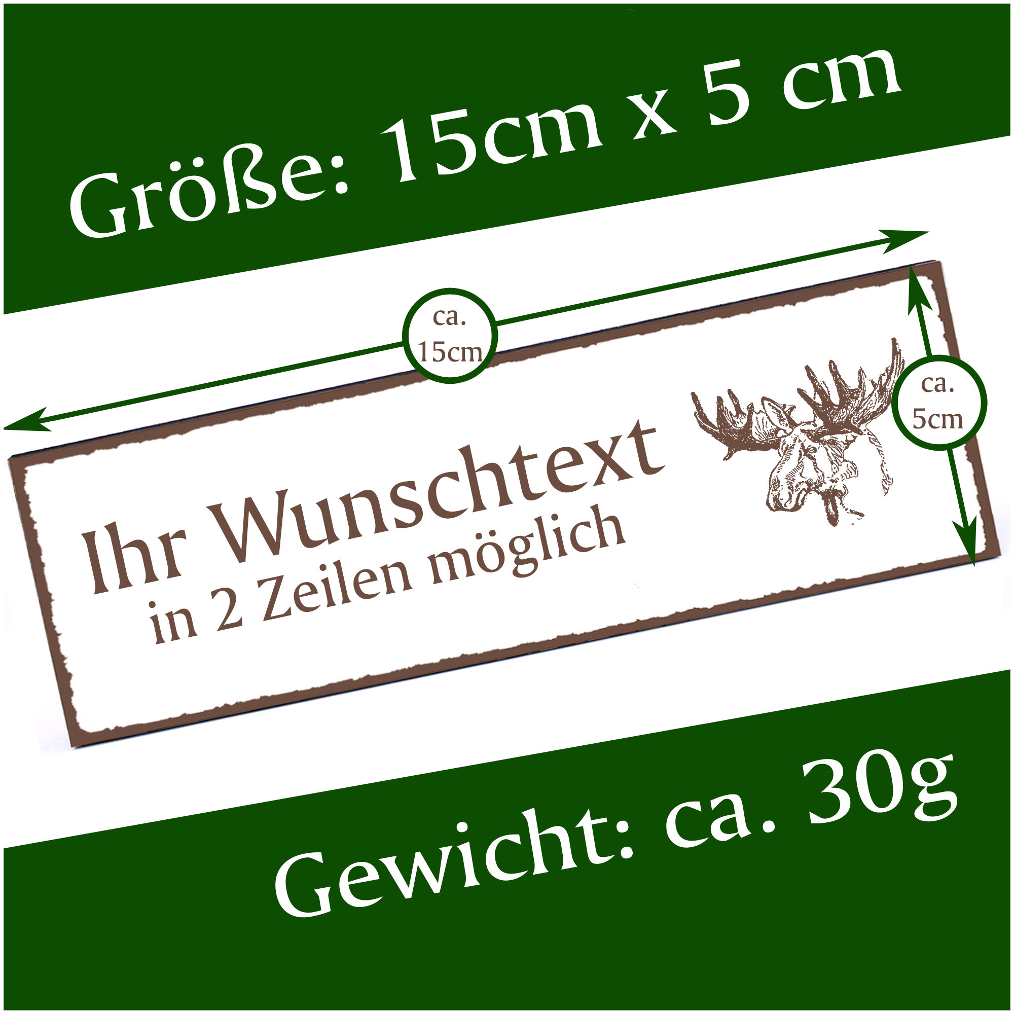 Türschild Elch Kopf Namensschild personalisiert mit Gravur - 150mm x 50mm - selbstklebend