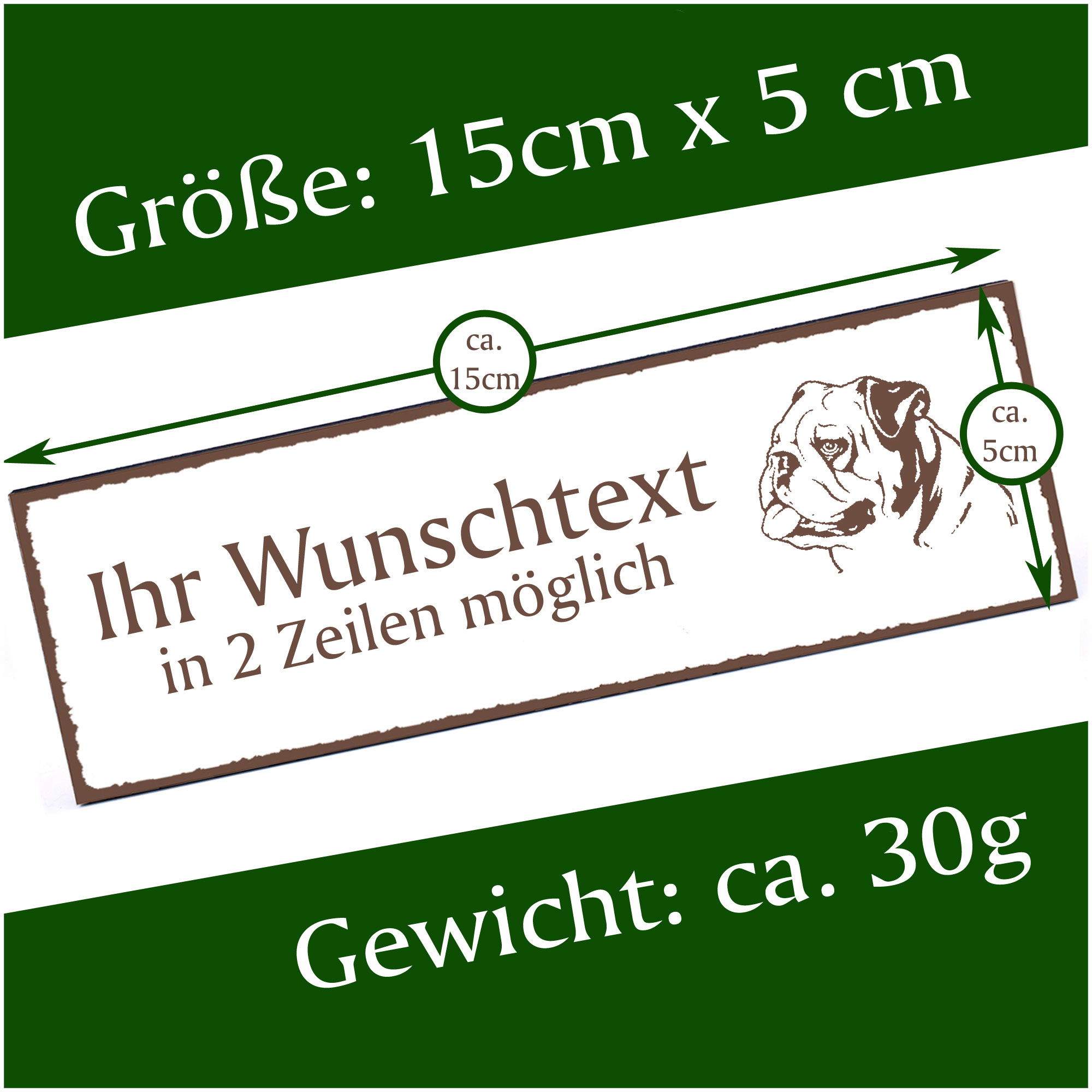 Türschild Englische Bulldoge Namensschild personalisiert mit Gravur - 150mm x 50mm - selbstklebend