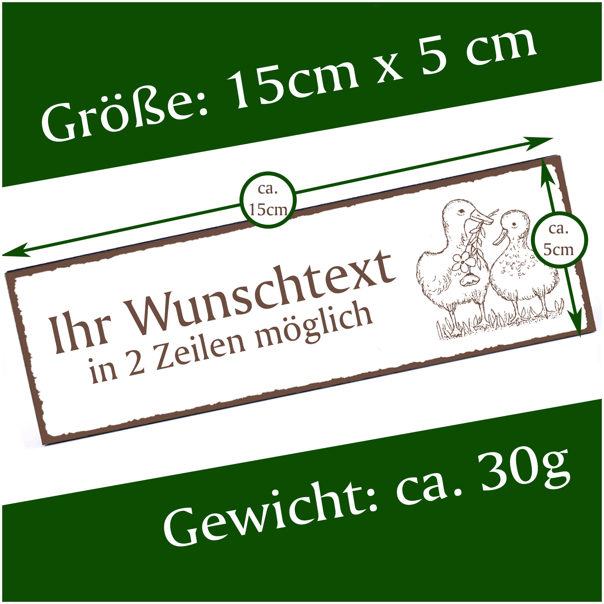 Türschild Entenpaar Namensschild personalisiert mit Gravur - 150mm x 50mm - selbstklebend