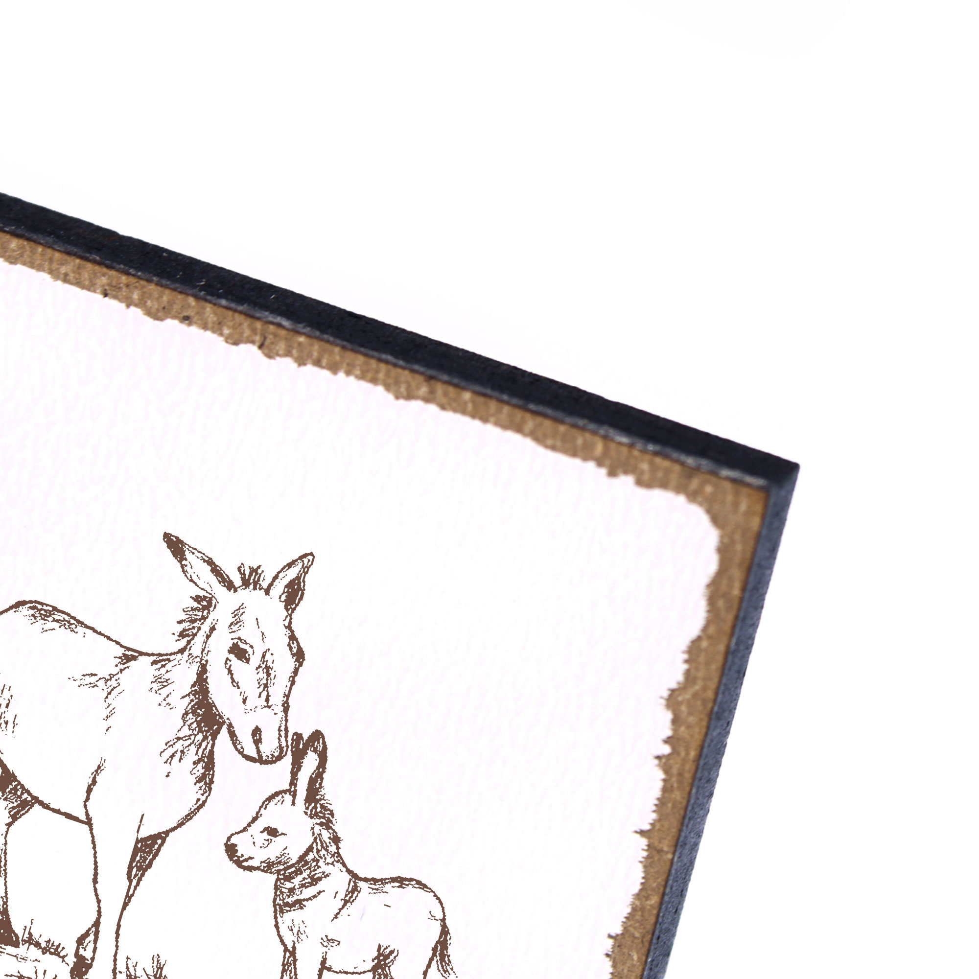Türschild Esel mit Jungtier Namensschild personalisiert mit Gravur - 150mm x 50mm - selbstklebend