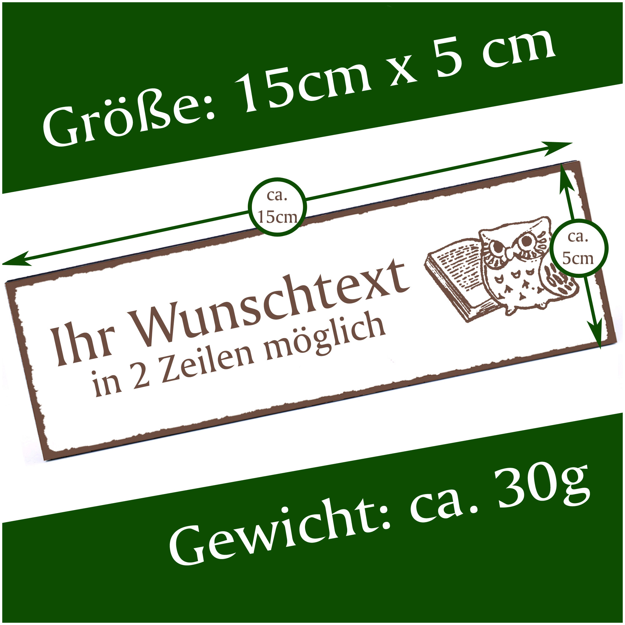 - HOLZSCHILD: Das Türschild ist ca. 150mm x 50mm groß. Das HDF Holz hat eine Stärke von 5mm. Insgesamt wiegt das Schild ca. 30g. Bitte vor Feuchtigkeit schützen