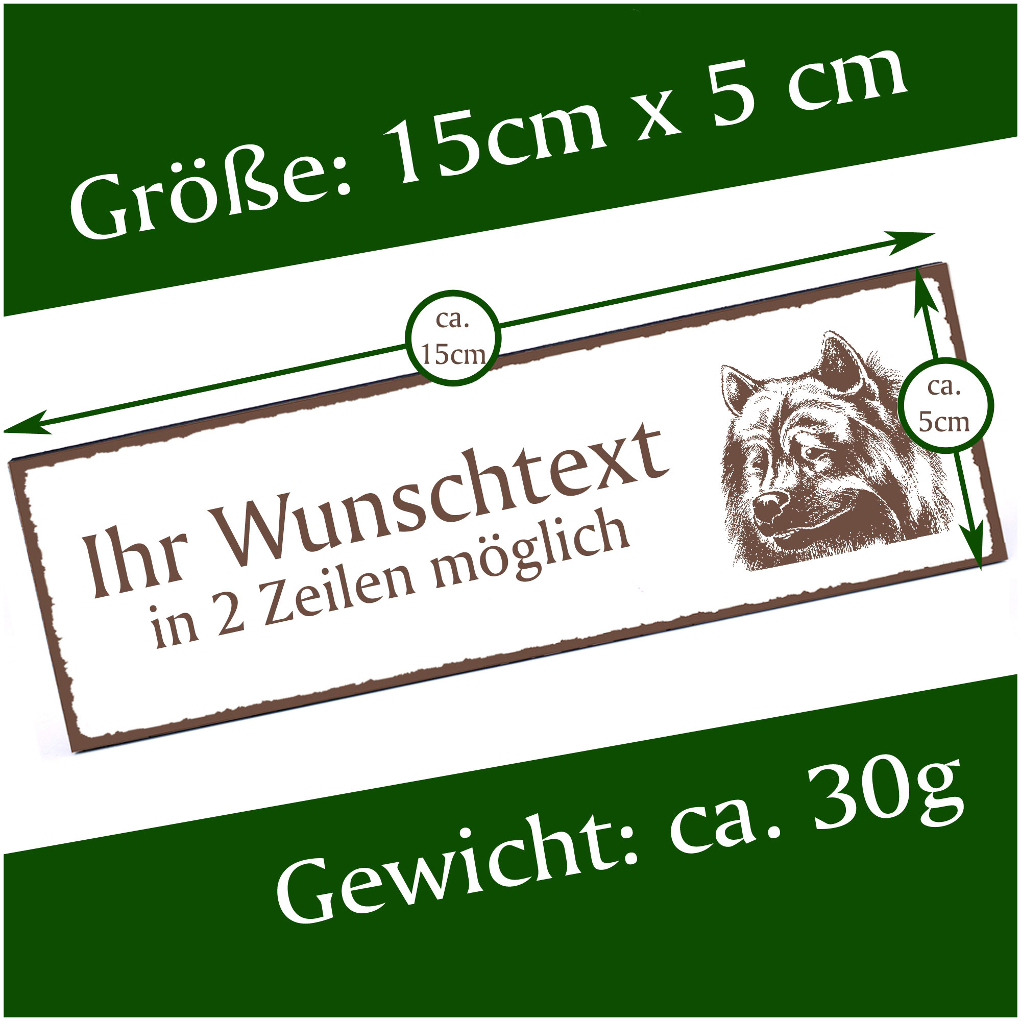 - HOLZSCHILD: Das Türschild ist ca. 150mm x 50mm groß. Das HDF Holz hat eine Stärke von 5mm. Insgesamt wiegt das Schild ca. 30g. Bitte vor Feuchtigkeit schützen