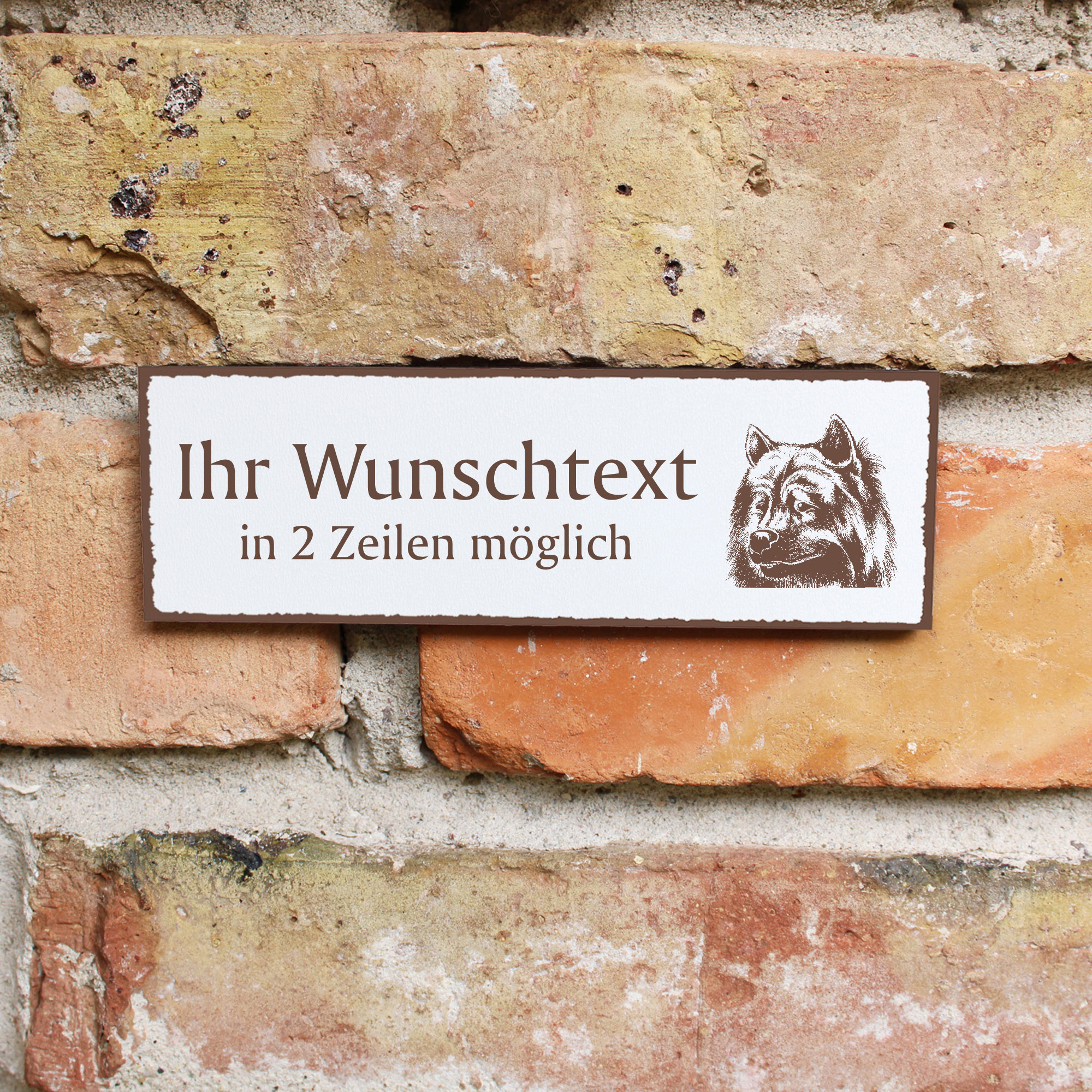 Türschild Eurasier Kopf Namensschild personalisiert mit Gravur - 150mm x 50mm - selbstklebend