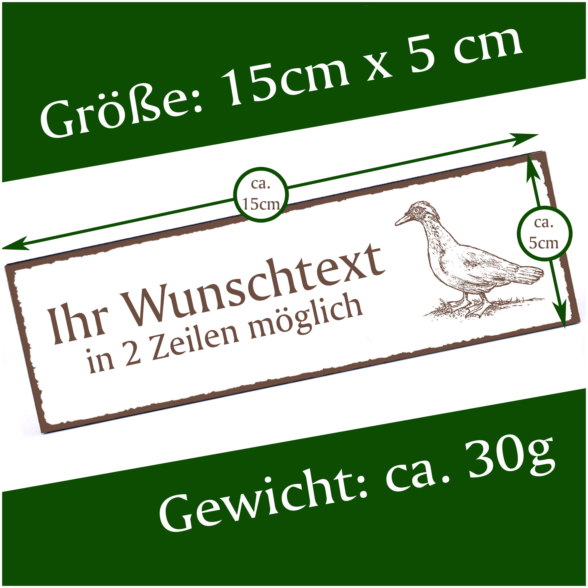 - HOLZSCHILD: Das Türschild ist ca. 150mm x 50mm groß. Das HDF Holz hat eine Stärke von 5mm. Insgesamt wiegt das Schild ca. 30g. Bitte vor Feuchtigkeit schützen