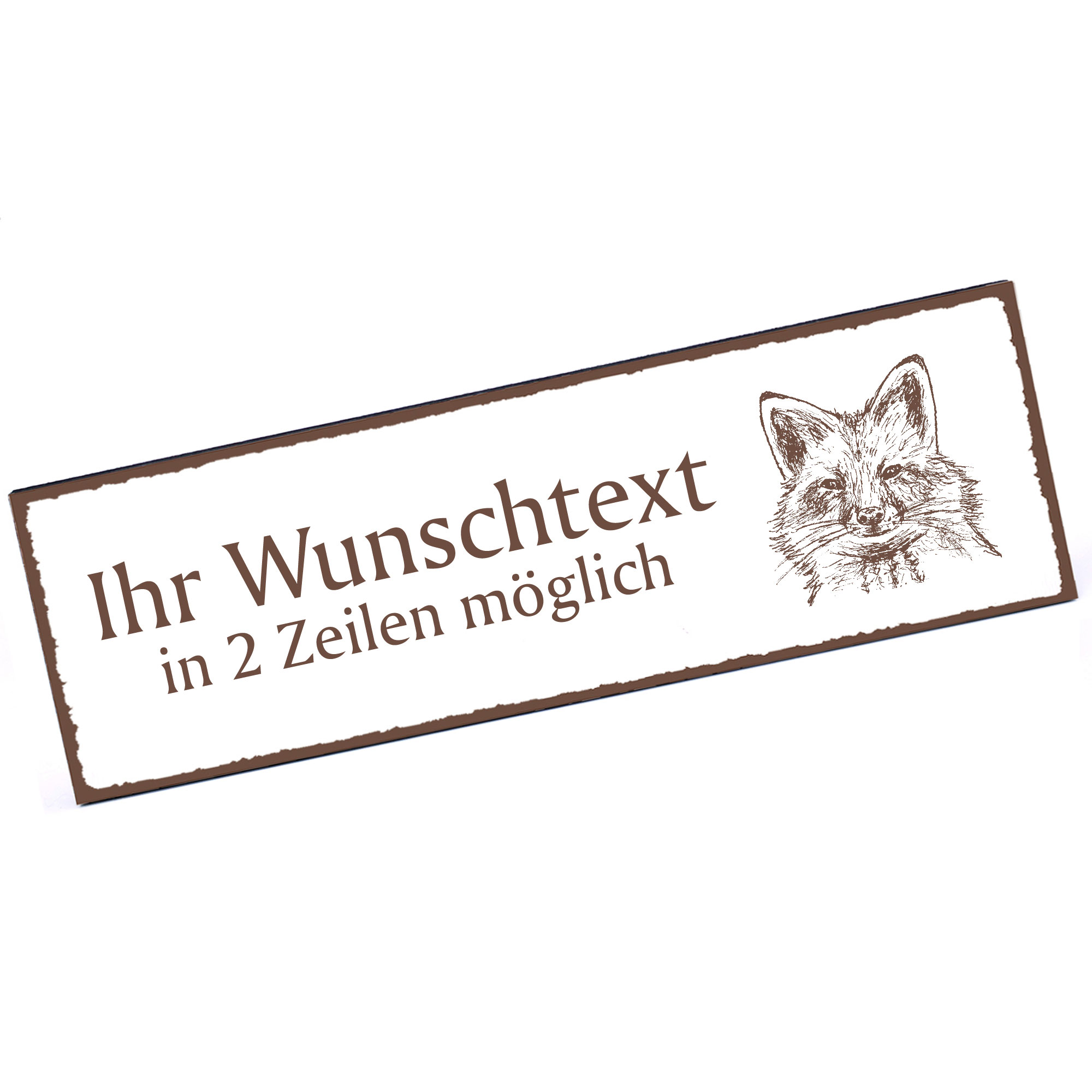 Türschild Fuchs Kopf Namensschild personalisiert mit Gravur - 150mm x 50mm - selbstklebend