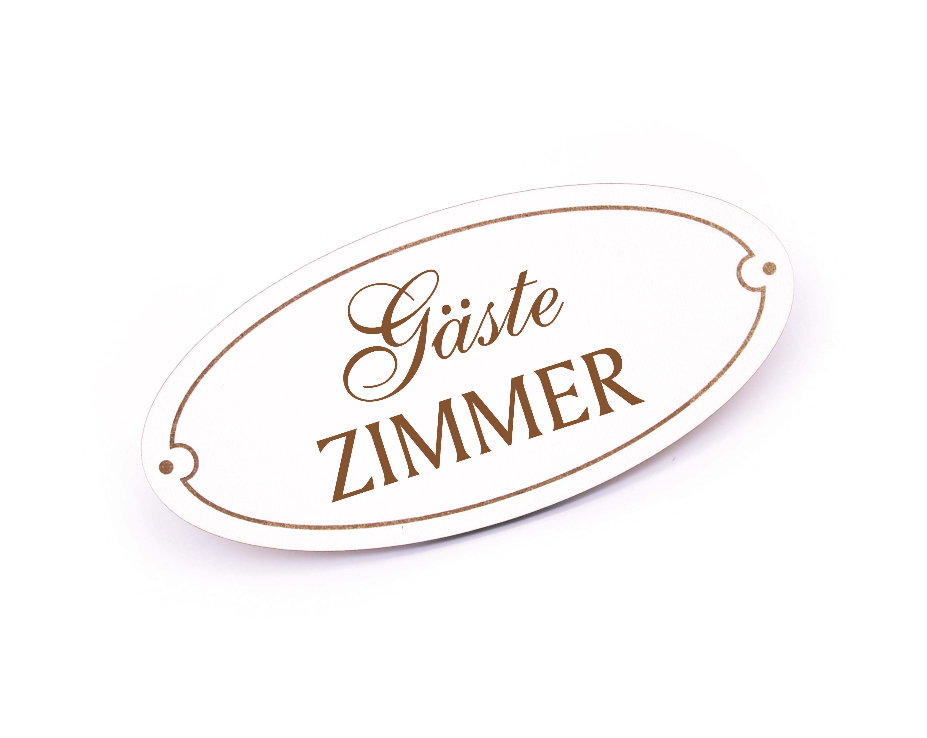 Türschild Gäste Zimmer - Schild oval Gästezimmer Gast Holzschild graviert selbstklebend 15 x 7 cm