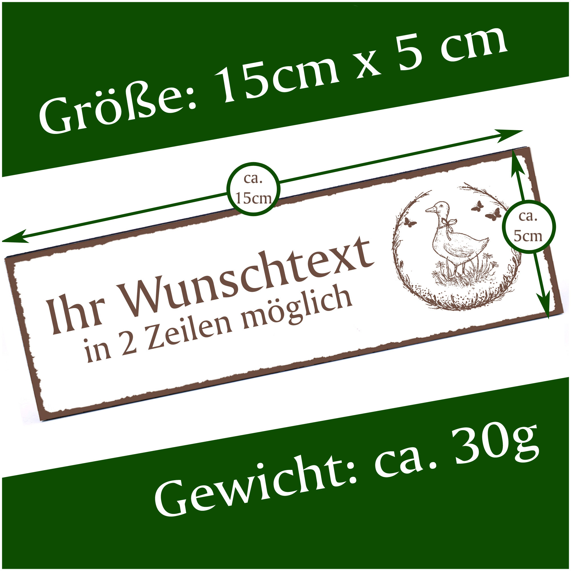 - HOLZSCHILD: Das Türschild ist ca. 150mm x 50mm groß. Das HDF Holz hat eine Stärke von 5mm. Insgesamt wiegt das Schild ca. 30g. Bitte vor Feuchtigkeit schützen