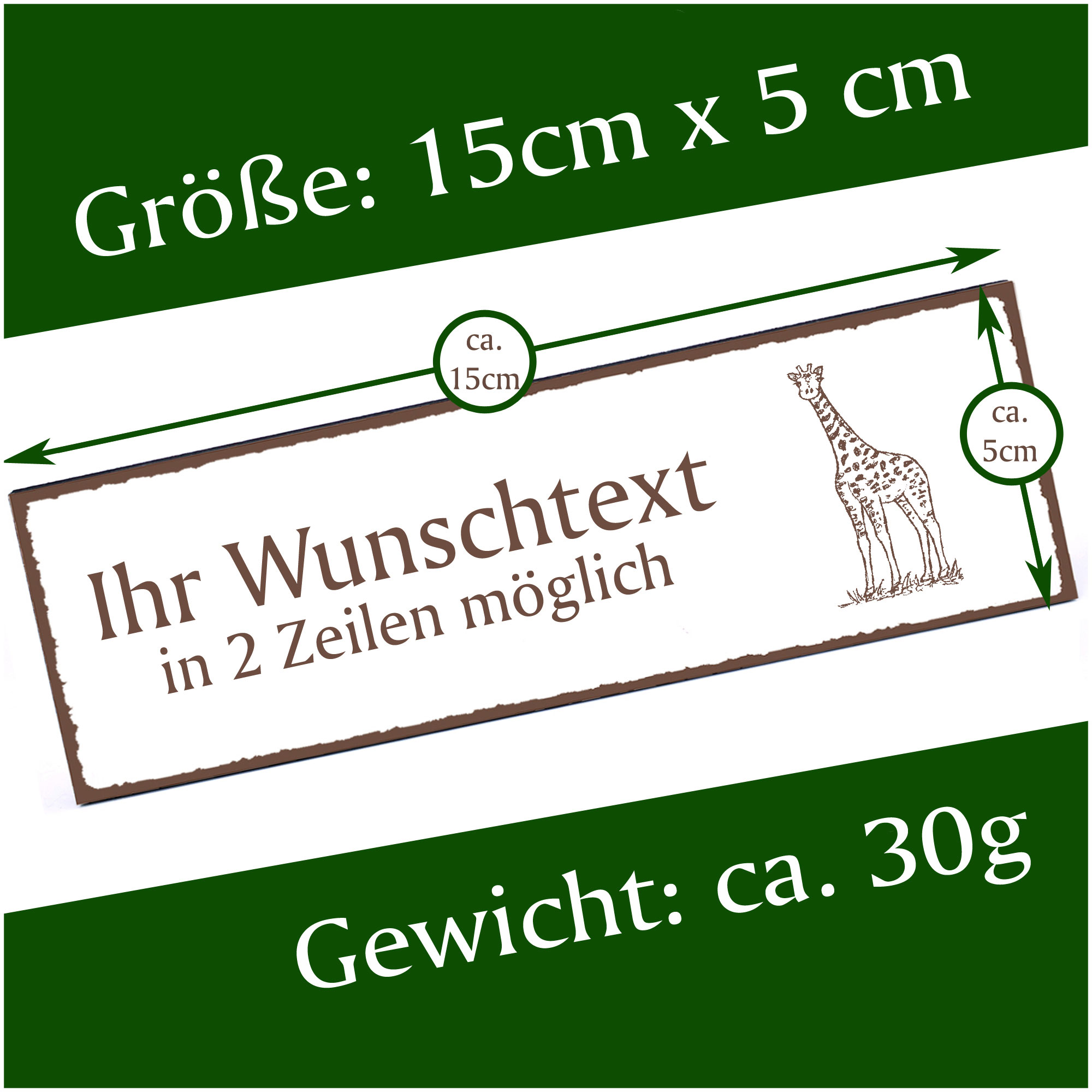 Türschild Giraffe auf Gras Namensschild personalisiert mit Gravur - 150mm x 50mm - selbstklebend