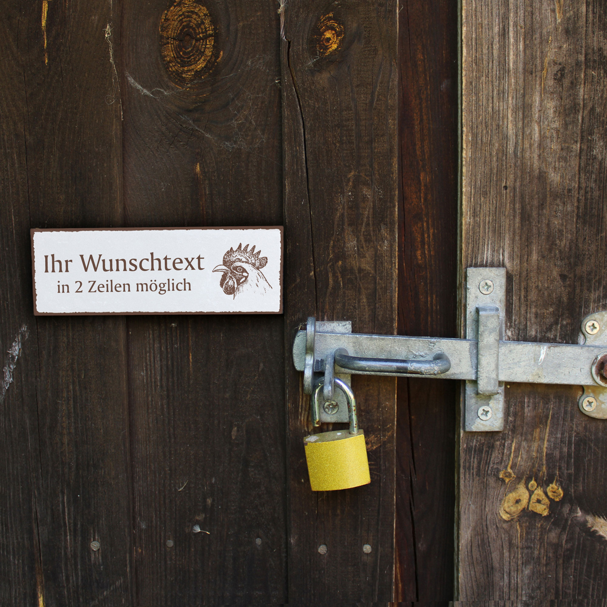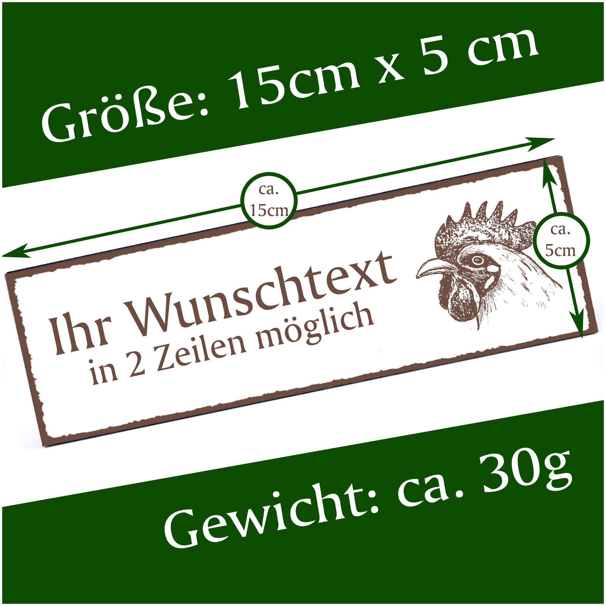 Türschild Hahn Namensschild personalisiert mit Gravur - 150mm x 50mm - selbstklebend