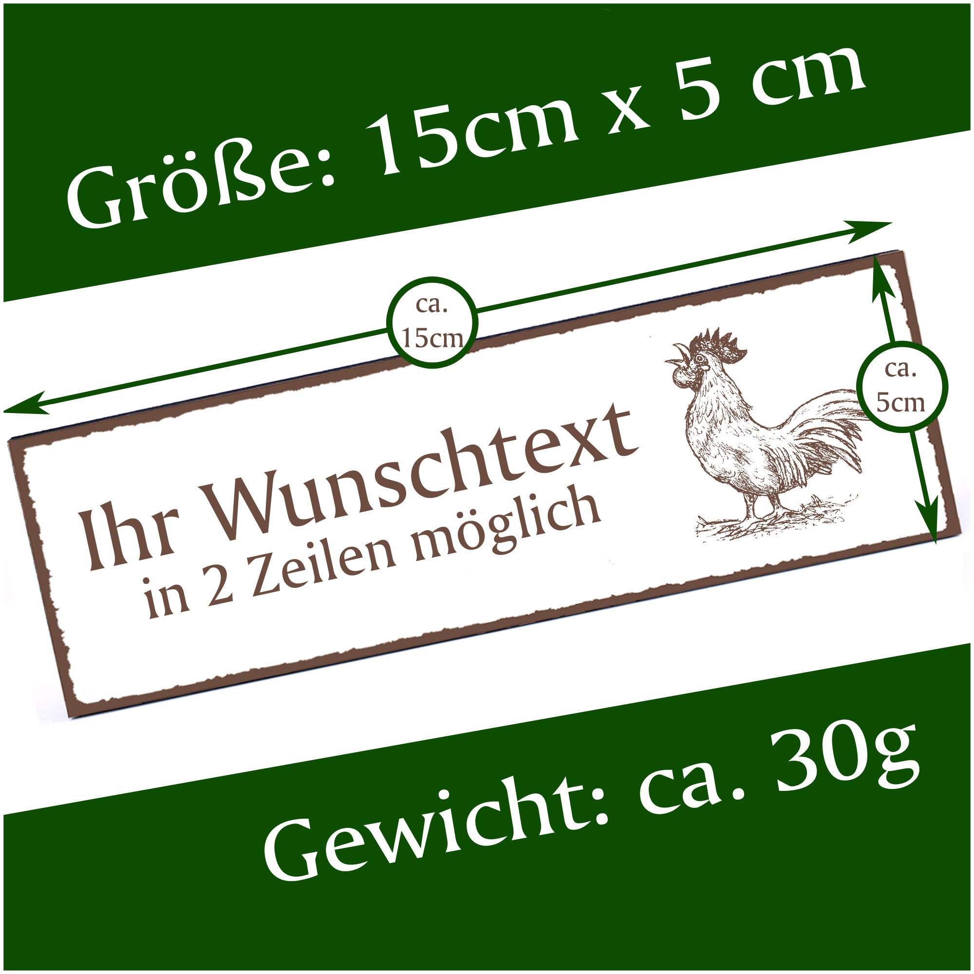 Türschild Hahn Namensschild personalisiert mit Gravur - 150mm x 50mm - selbstklebend