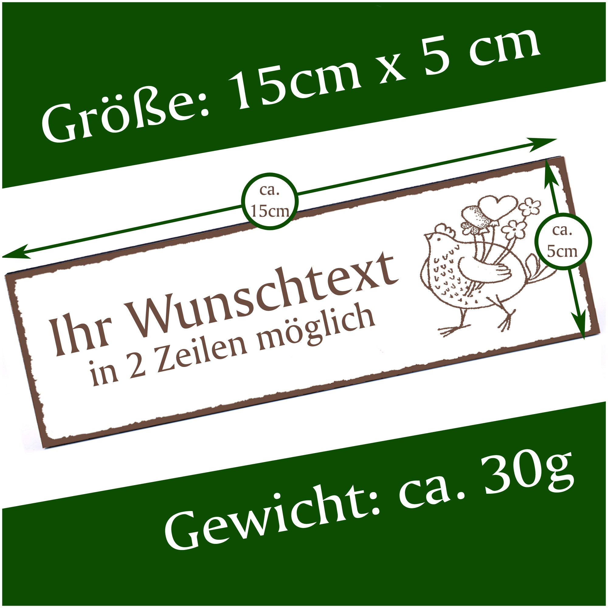 Türschild Henne mit Herzen Namensschild personalisiert mit Gravur - 150mm x 50mm - selbstklebend