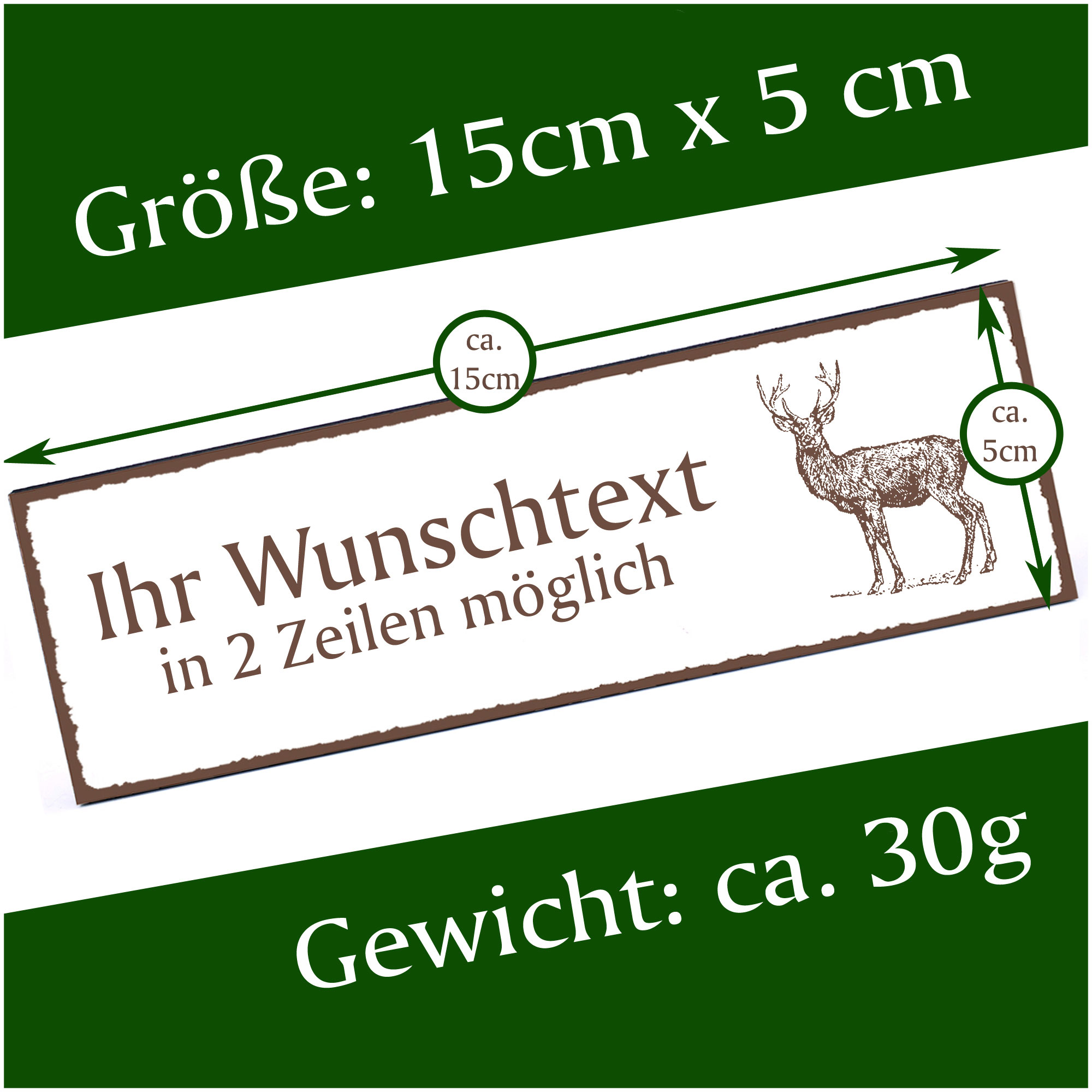 Türschild Hirsch Namensschild personalisiert mit Gravur - 150mm x 50mm - selbstklebend
