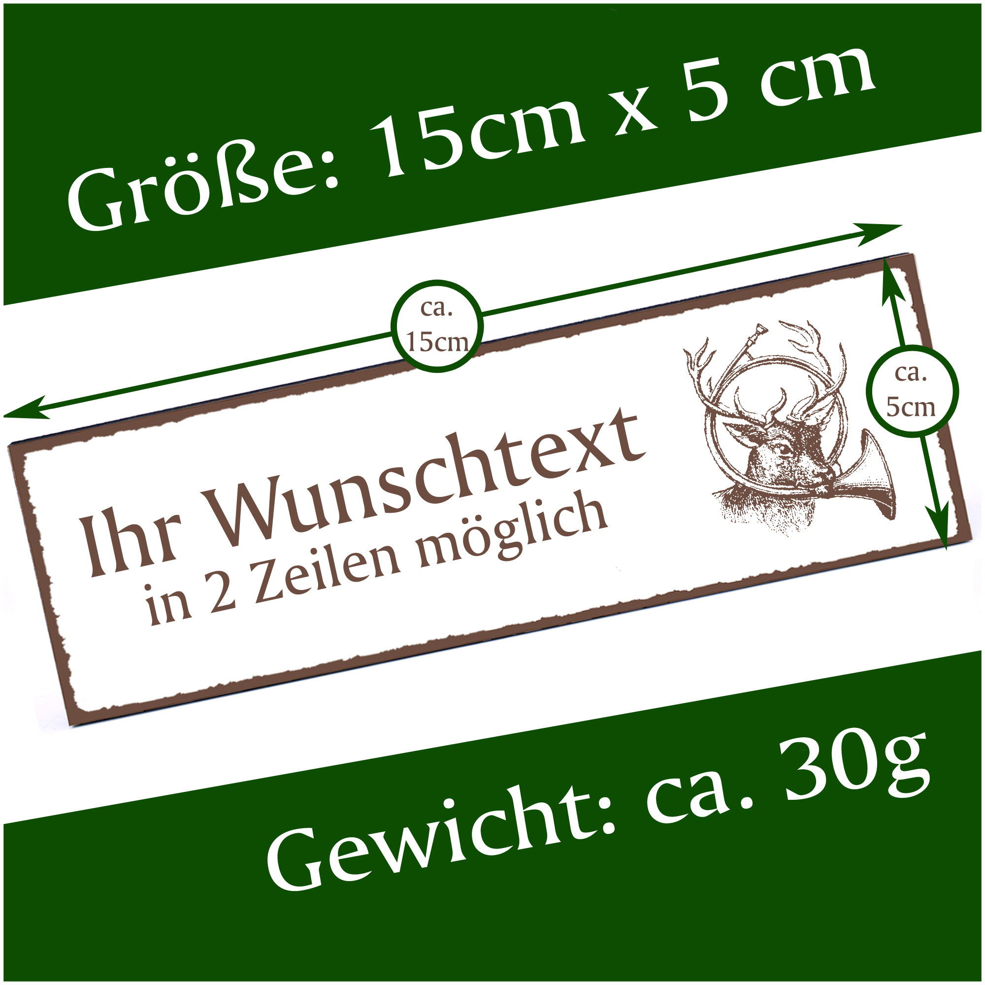Türschild Hirsch mit Waldhorn Namensschild personalisiert mit Gravur - 150mm x 50mm - selbstklebend