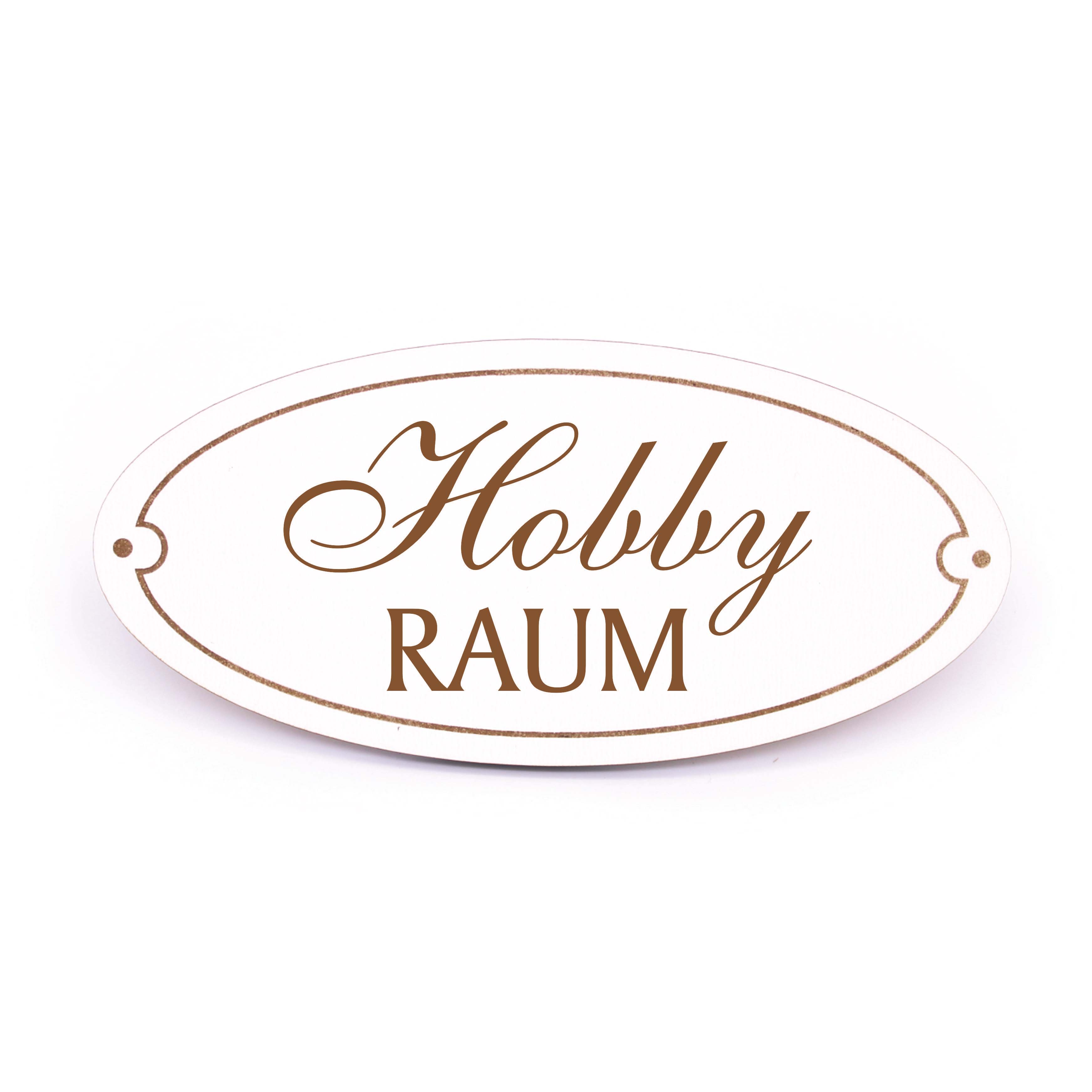 Türschild Hobby Raum - Schild oval Hobbyraum Holzschild Gravur selbstklebend 15 x 7 cm