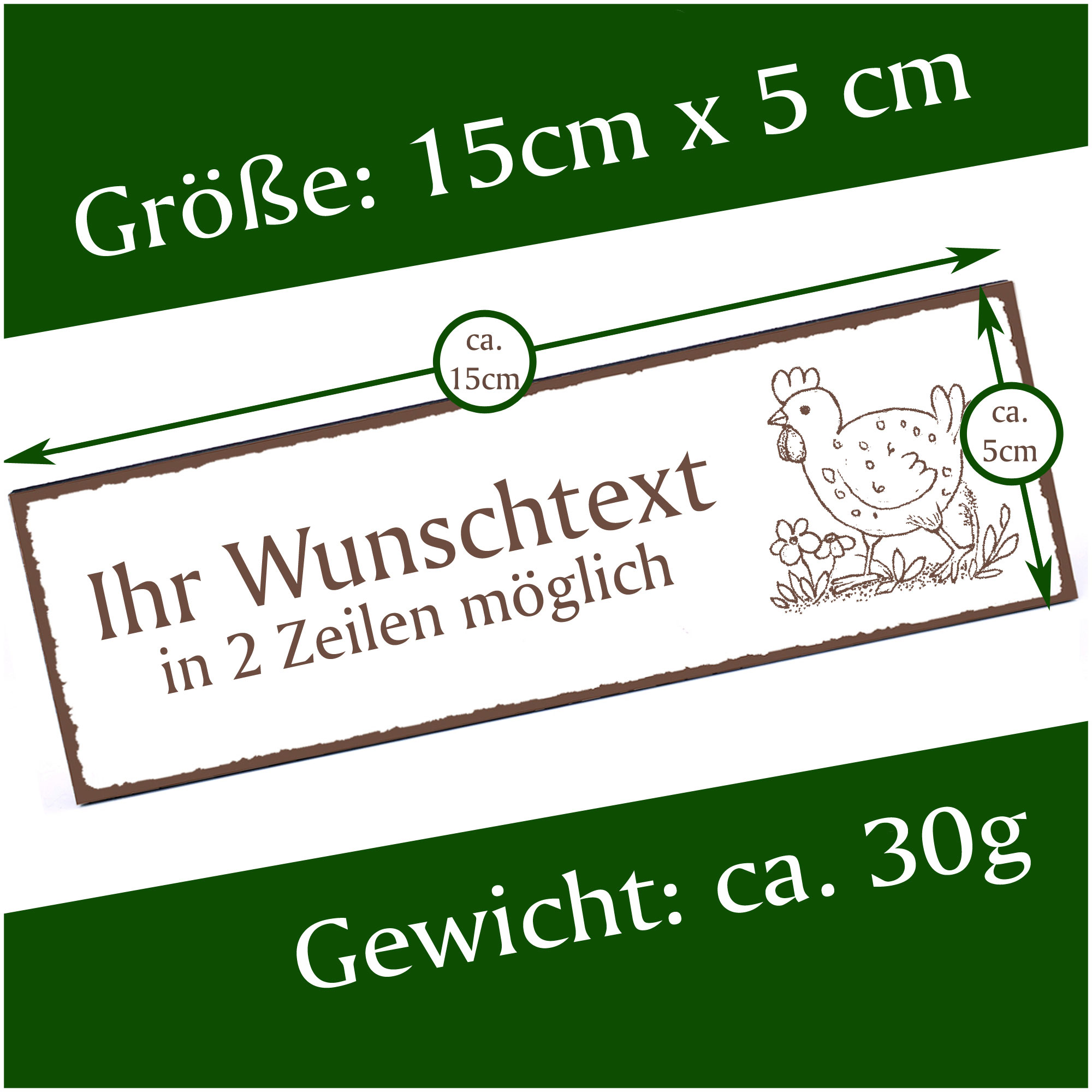 Produktinformationen "Türschild Huhn auf einer Wiese Namensschild personalisiert mit Gravur - 150mm x 50mm - selbstkleben"