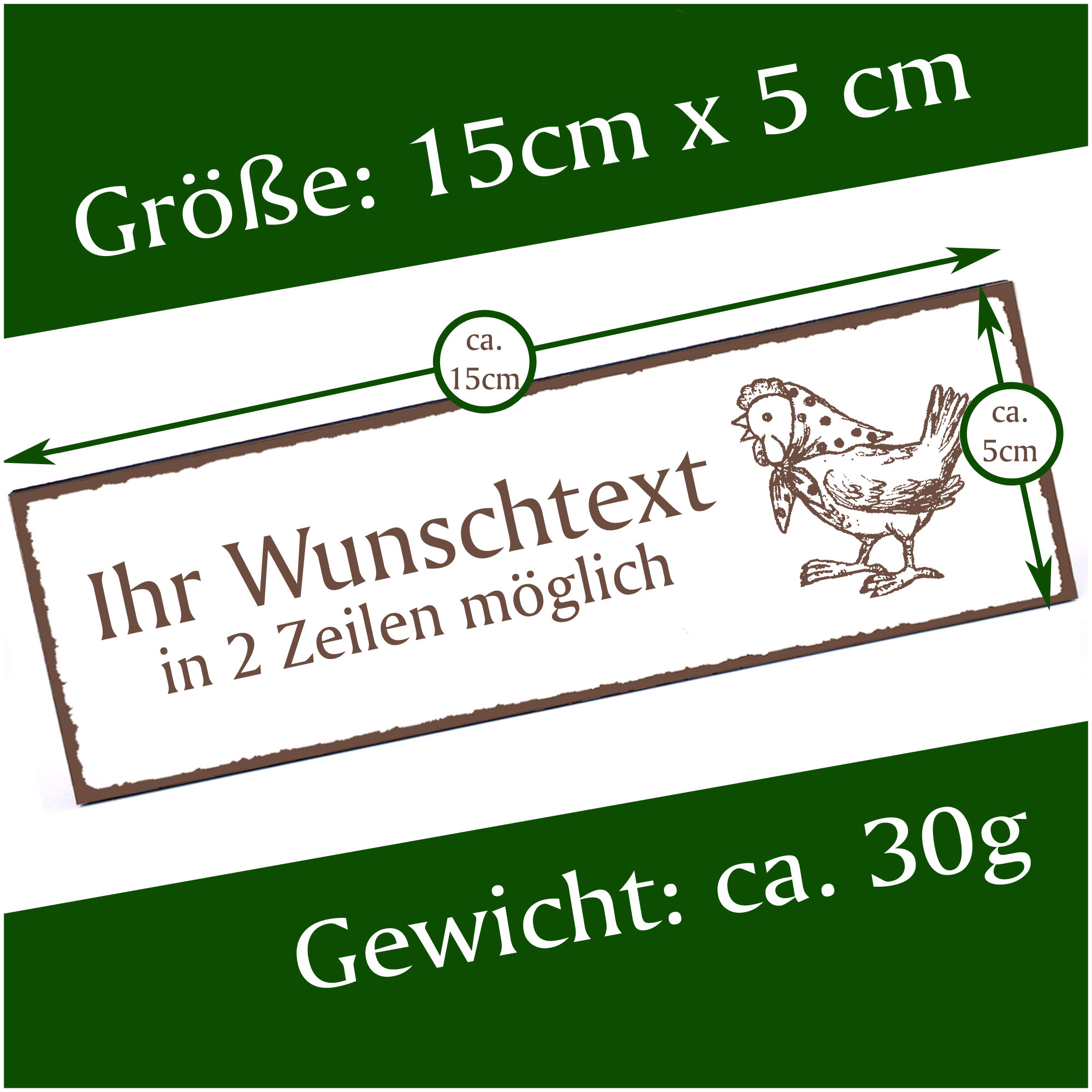 Türschild Huhn mit Kopftuch Namensschild personalisiert mit Gravur - 150mm x 50mm - selbstklebend