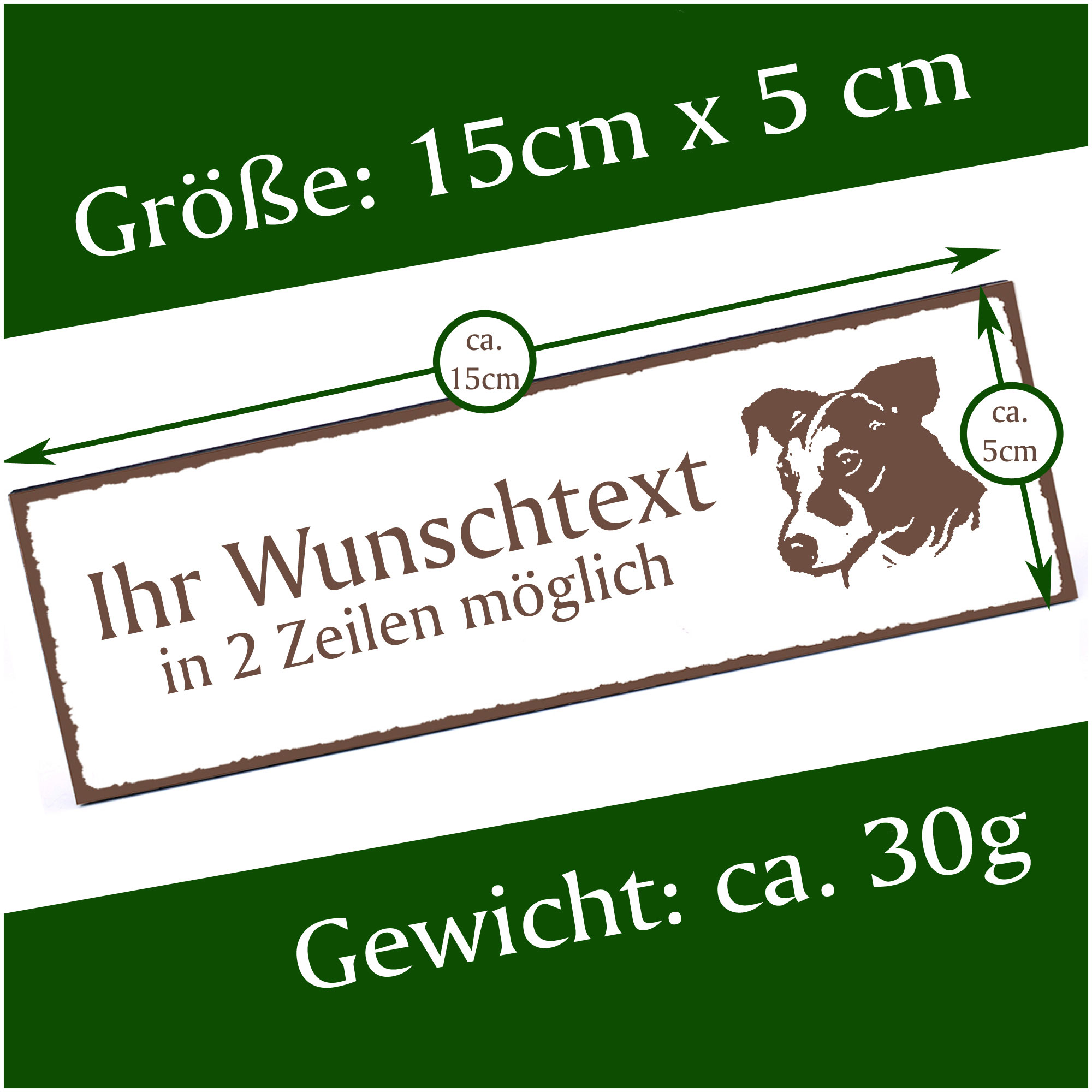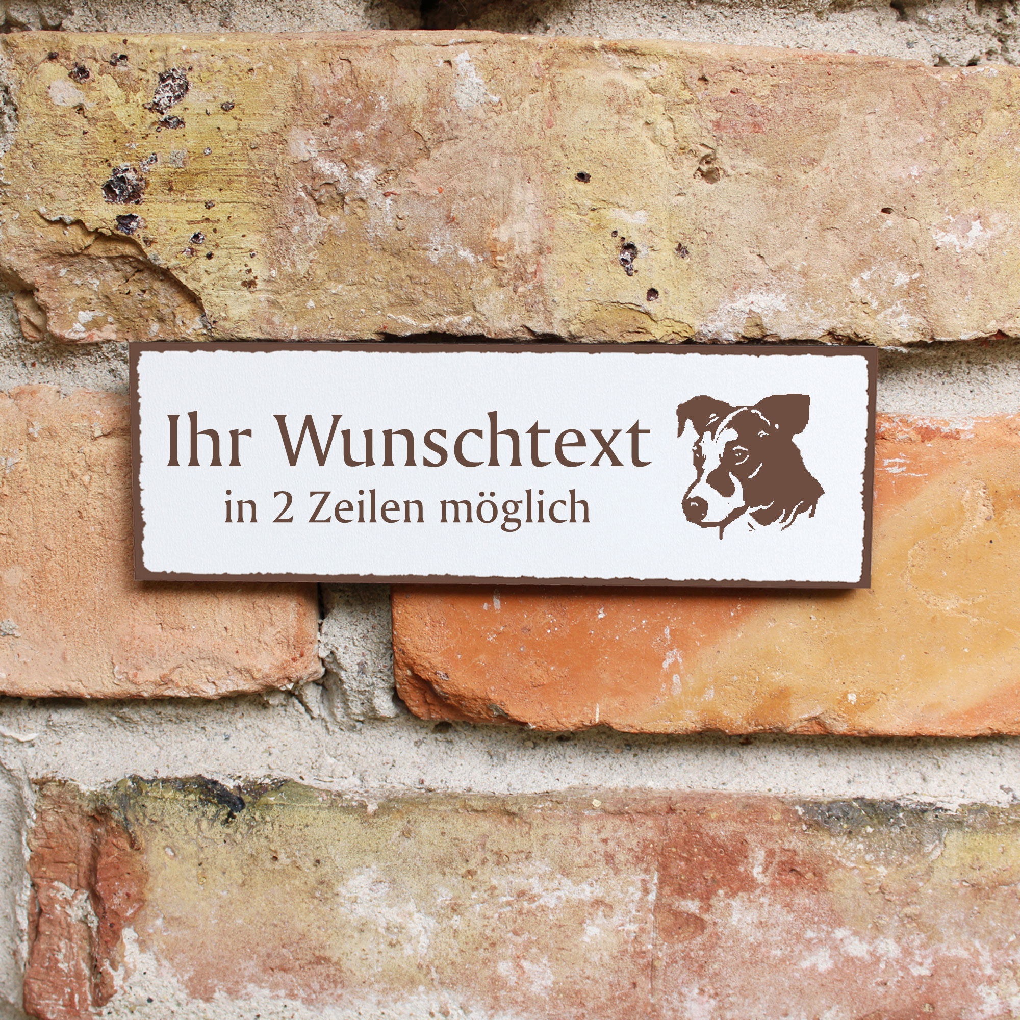 Türschild Jack Russel Terrier Kopf Namensschild personalisiert mit Gravur - 150mm x 50mm - selbstkl