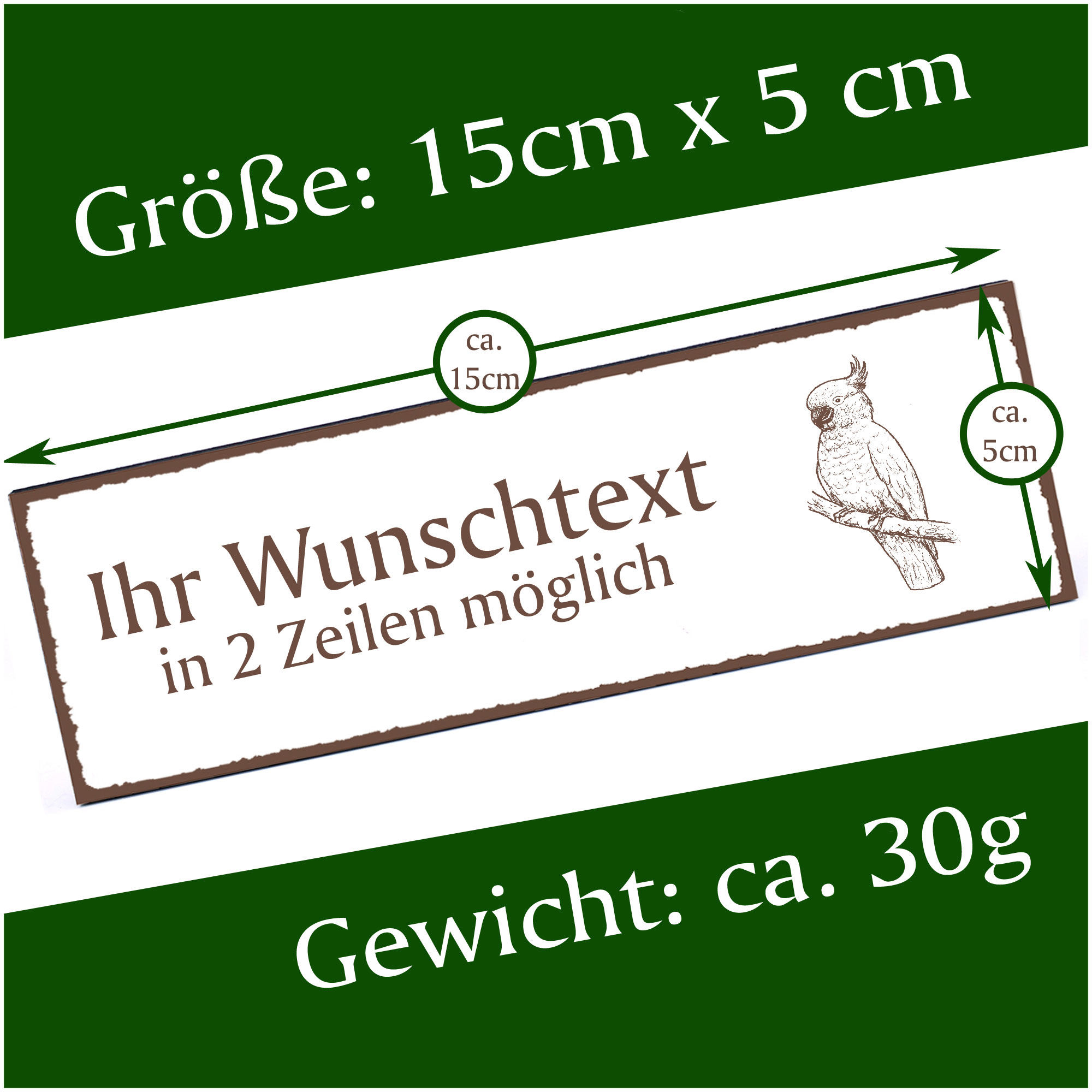 Türschild Kakadu Namensschild personalisiert mit Gravur - 150mm x 50mm - selbstklebend