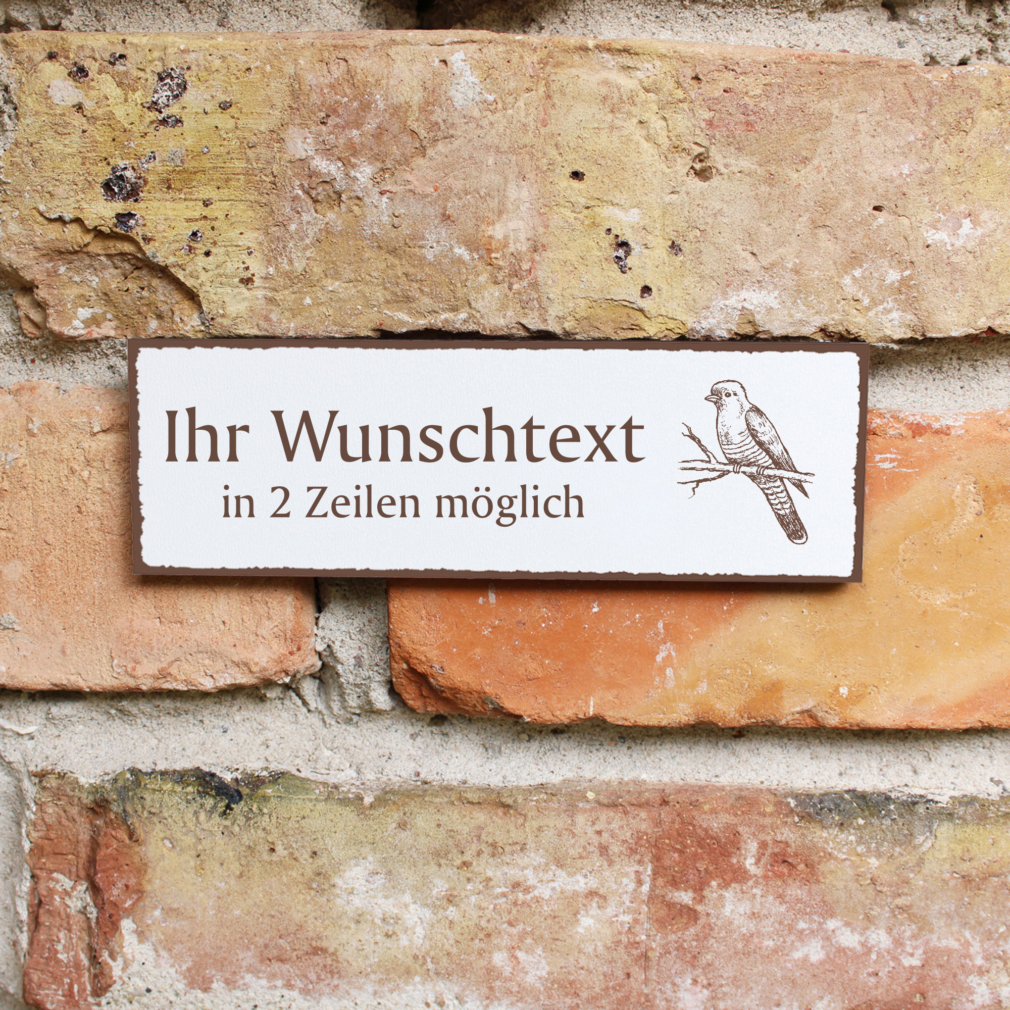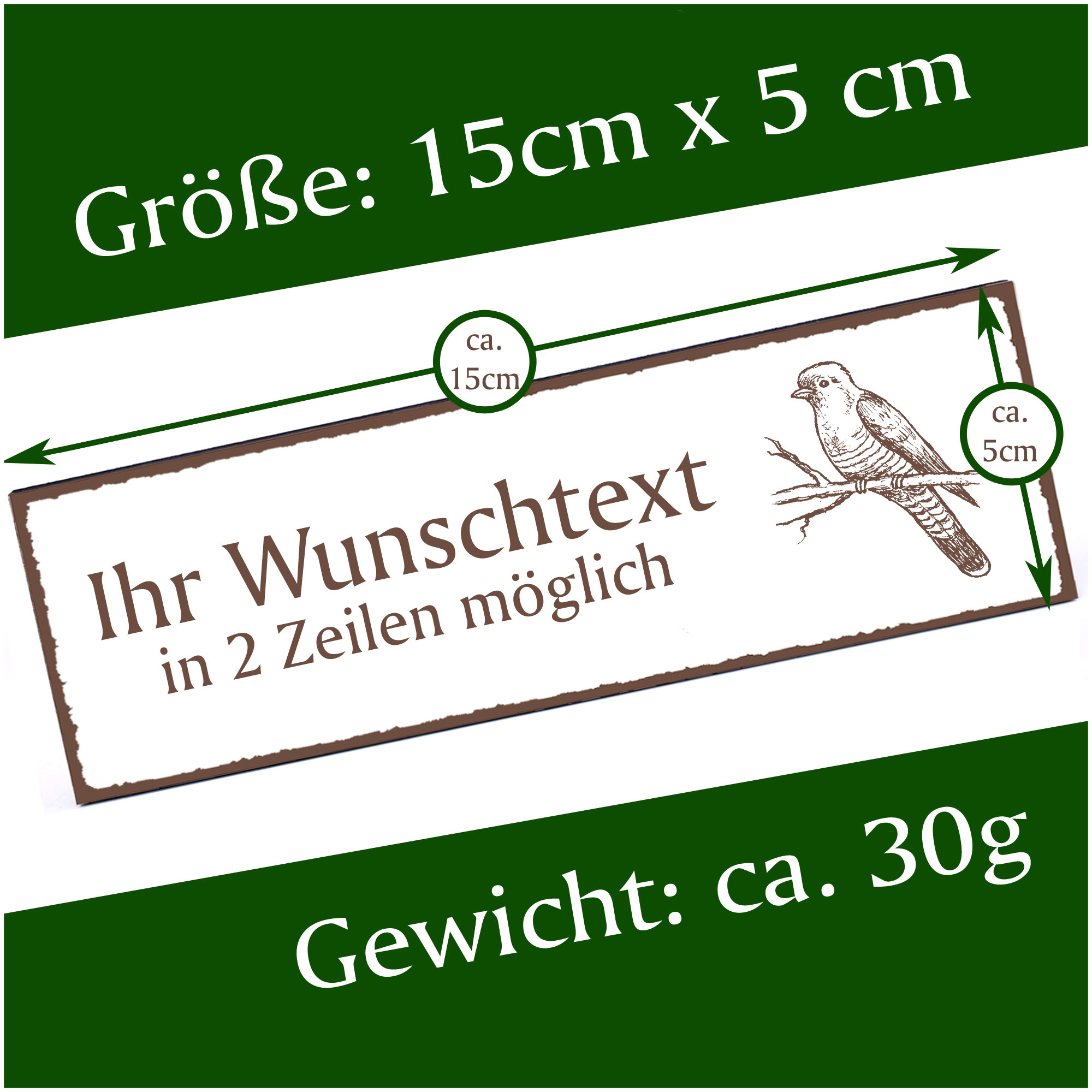 Türschild Kuckuck auf Ast Namensschild personalisiert mit Gravur - 150mm x 50mm - selbstklebend