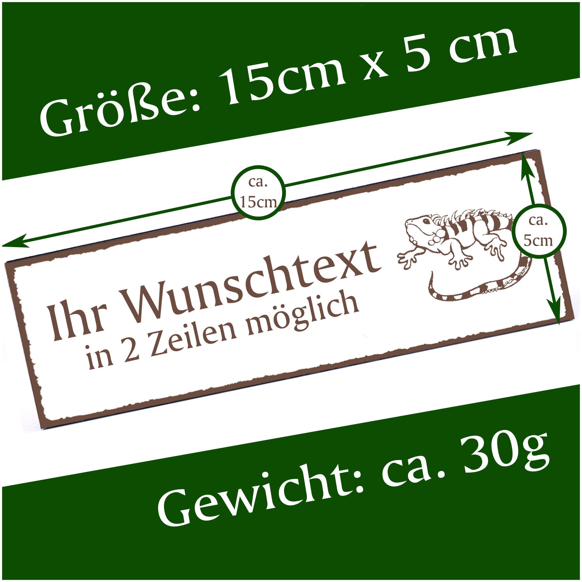 Türschild Leguan Namensschild personalisiert mit Gravur - 150mm x 50mm - selbstklebend
