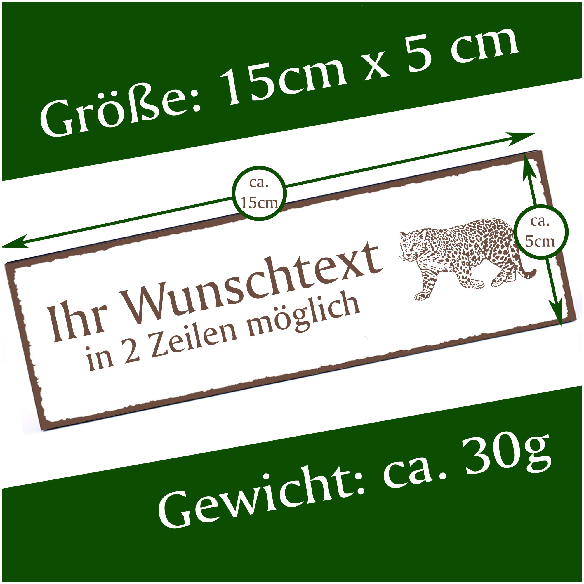 Türschild Leopard Namensschild personalisiert mit Gravur - 150mm x 50mm - selbstklebend