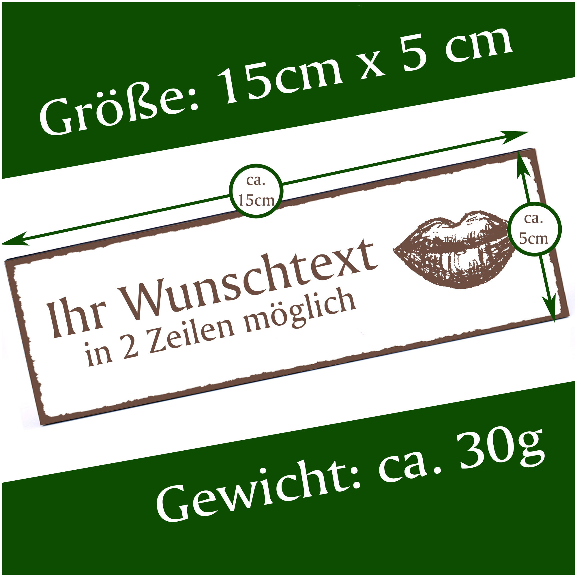 Türschild Mund Namensschild personalisiert mit Gravur - 150mm x 50mm - selbstklebend