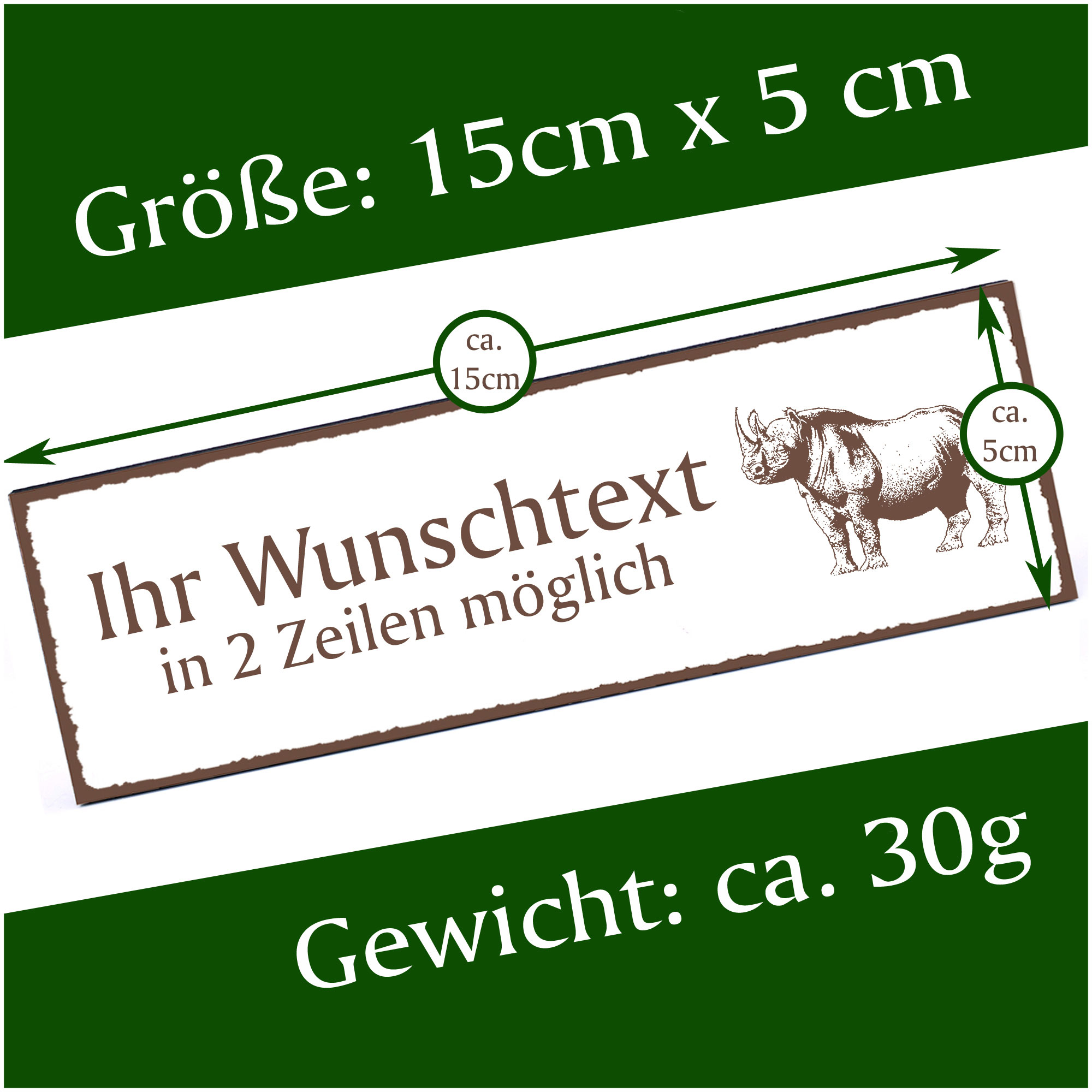 Türschild Nashorn Namensschild personalisiert mit Gravur - 150mm x 50mm - selbstklebend