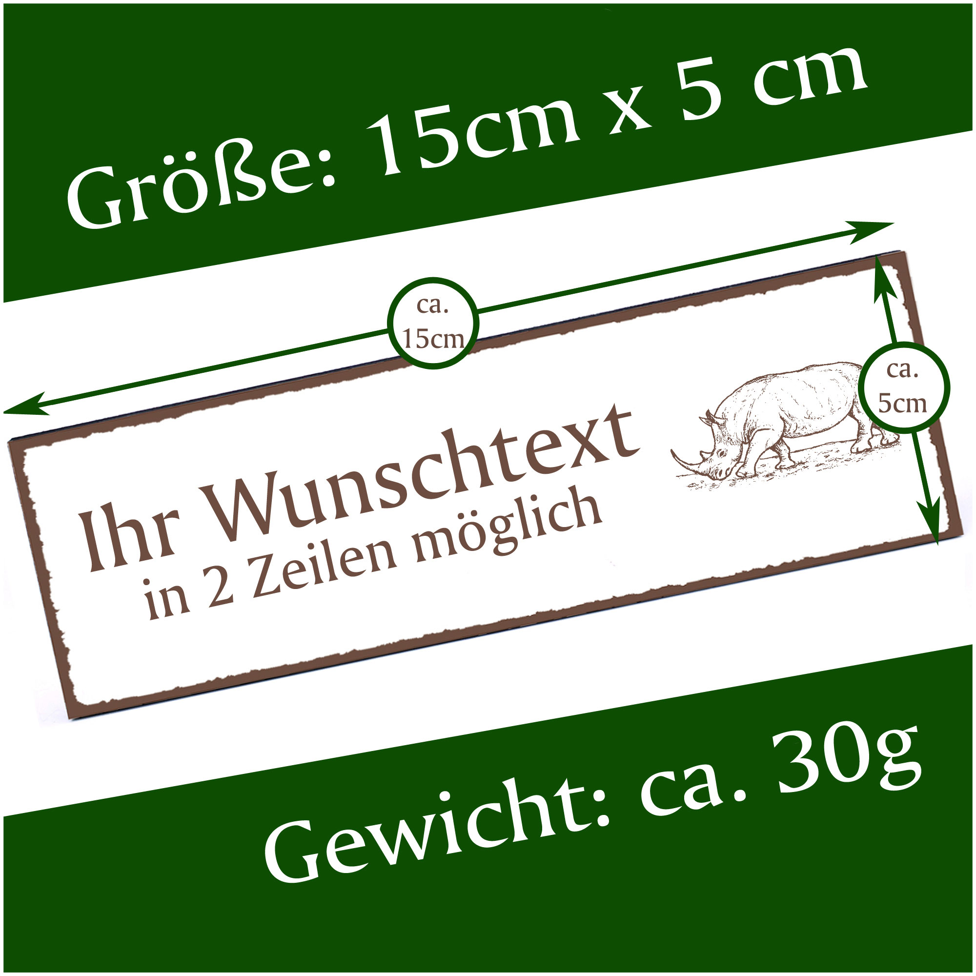 Türschild Nashorn Namensschild personalisiert mit Gravur - 150mm x 50mm - selbstklebend