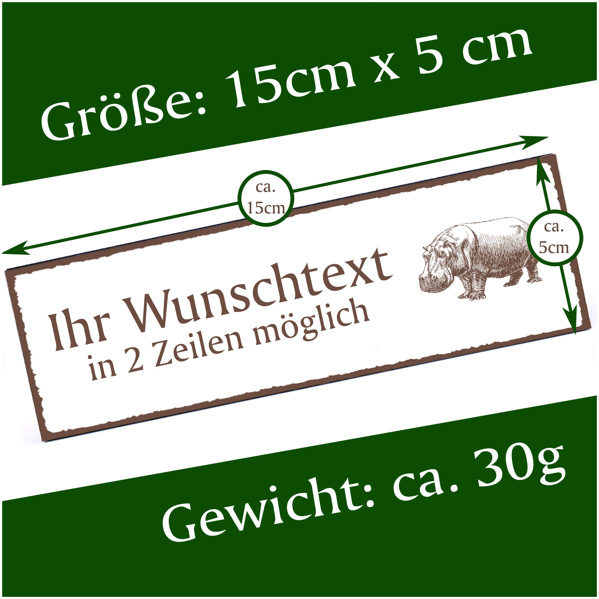 - HOLZSCHILD: Das Türschild ist ca. 150mm x 50mm groß. Das HDF Holz hat eine Stärke von 5mm. Insgesamt wiegt das Schild ca. 30g. Bitte vor Feuchtigkeit schützen