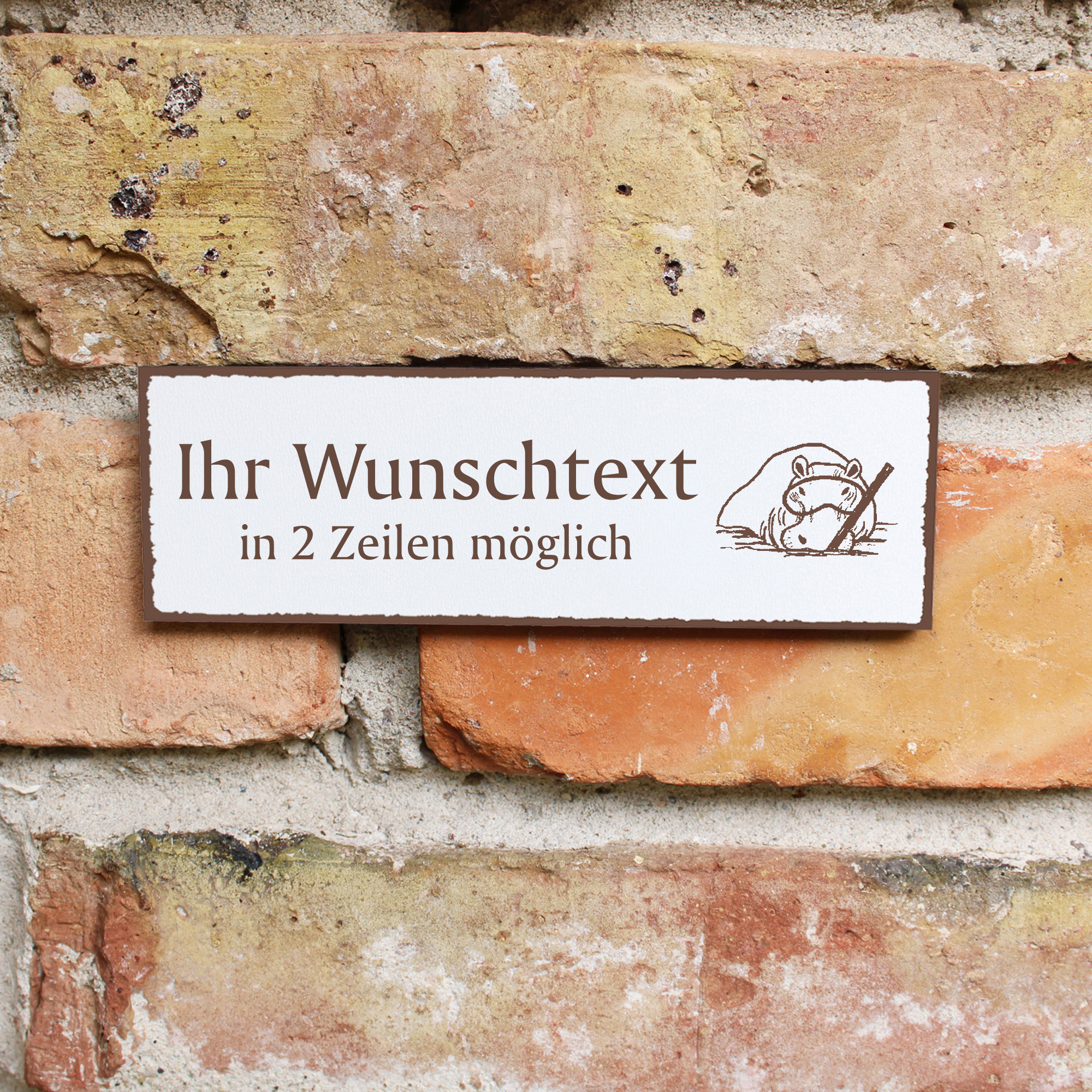 Türschild Nilpferd mit Taucherbrille Namensschild personalisiert mit Gravur - 150mm x 50mm - selbst