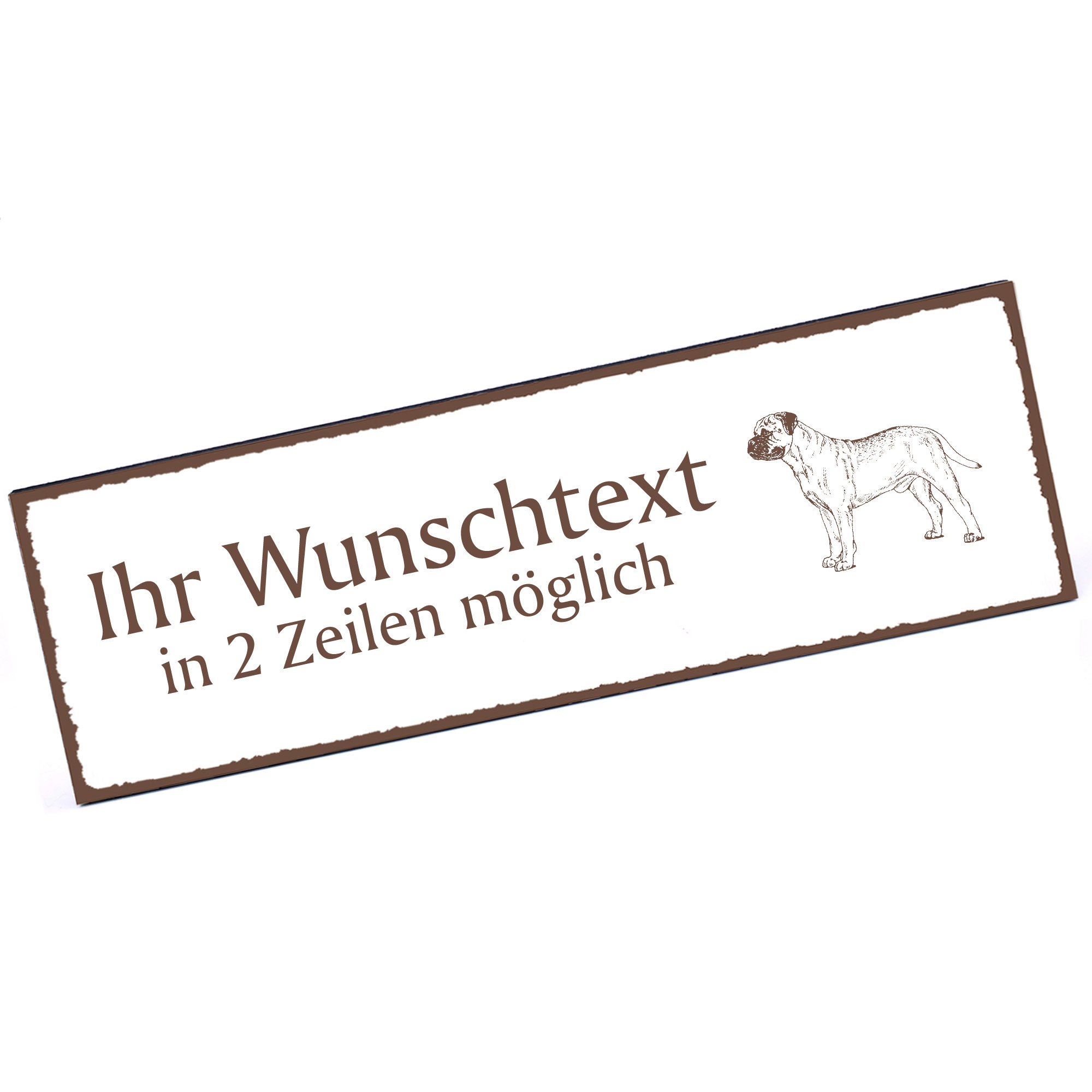 Türschild Old English Mastiff Namensschild personalisiert mit Gravur - 150mm x 50mm - selbstklebend