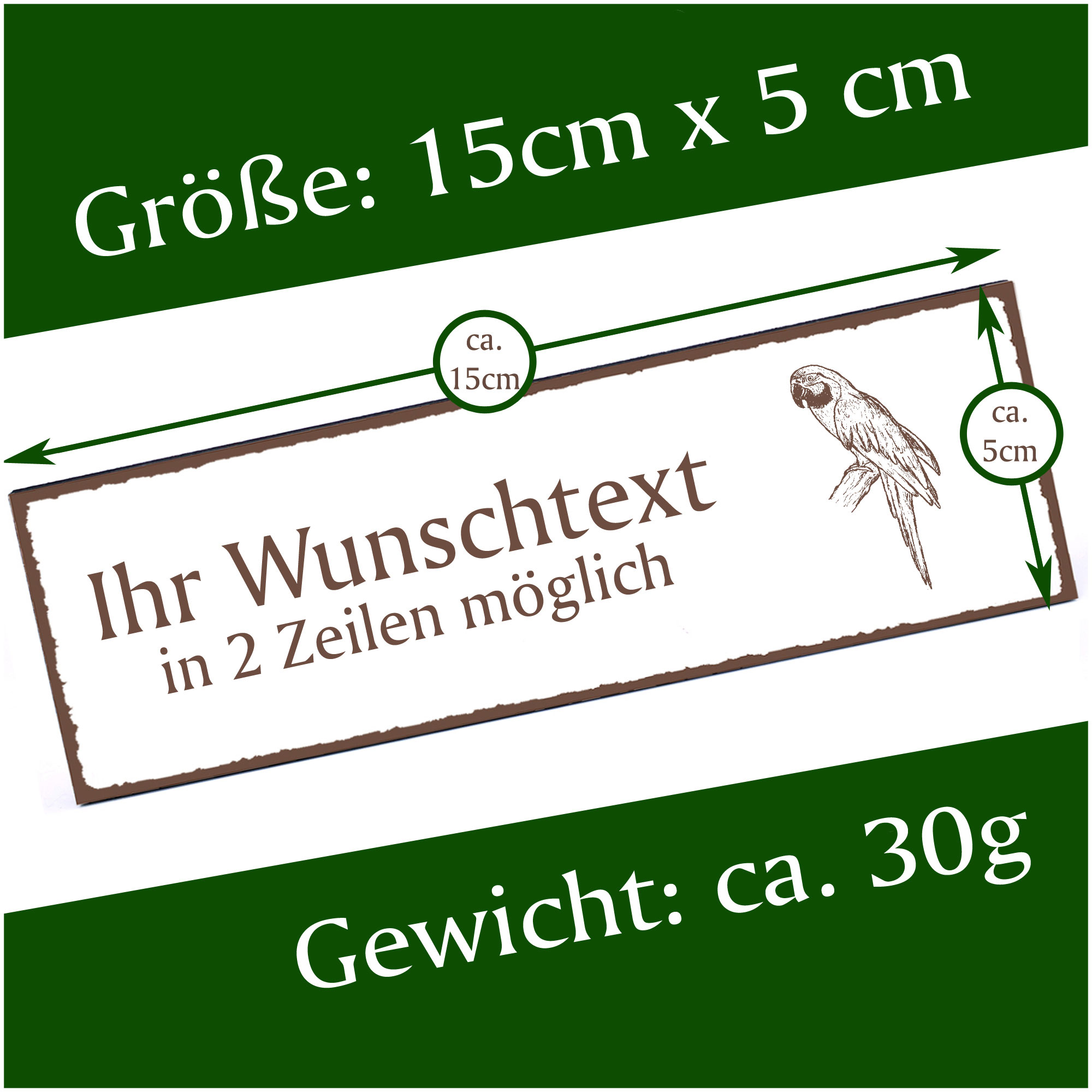 Türschild Papagei auf Ast Namensschild personalisiert mit Gravur - 150mm x 50mm - selbstklebend