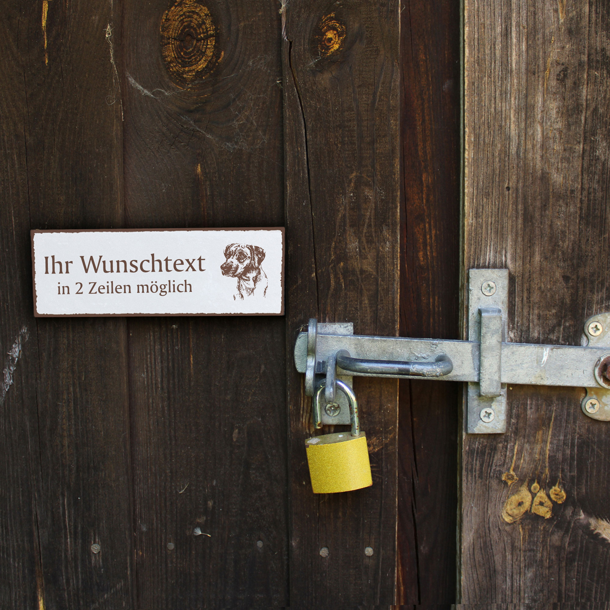 Türschild Rhodesian Ridgeback Kopf Namensschild personalisiert mit Gravur - 150mm x 50mm - selbstkl