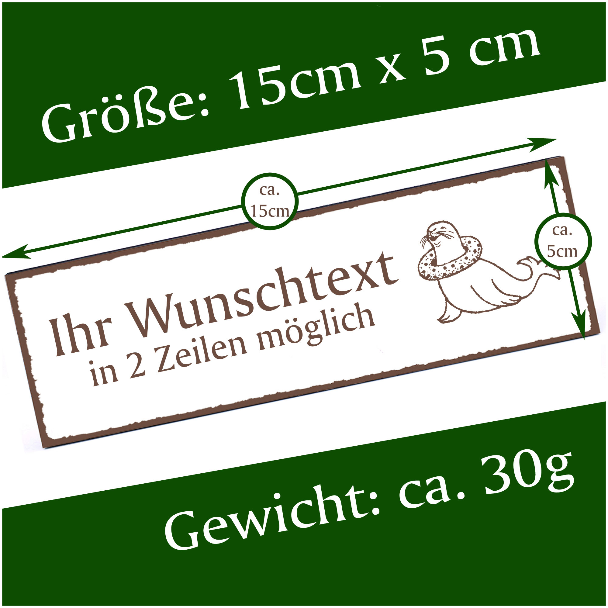 Türschild Robbe mit Schwimmreifen Namensschild personalisiert mit Gravur - 150mm x 50mm - selbstkle