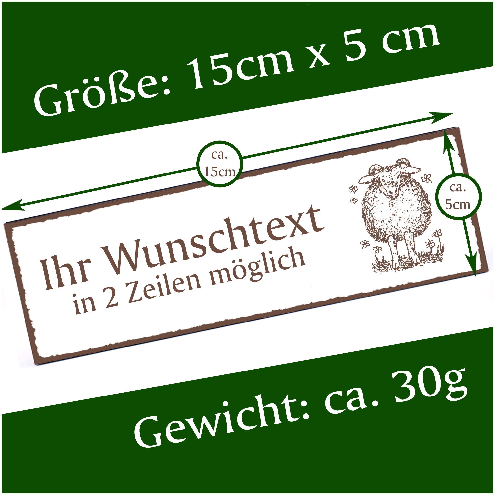 Produktinformationen "Türschild Schaf mit Blume Namensschild personalisiert mit Gravur - 150mm x 50mm - selbstklebend"