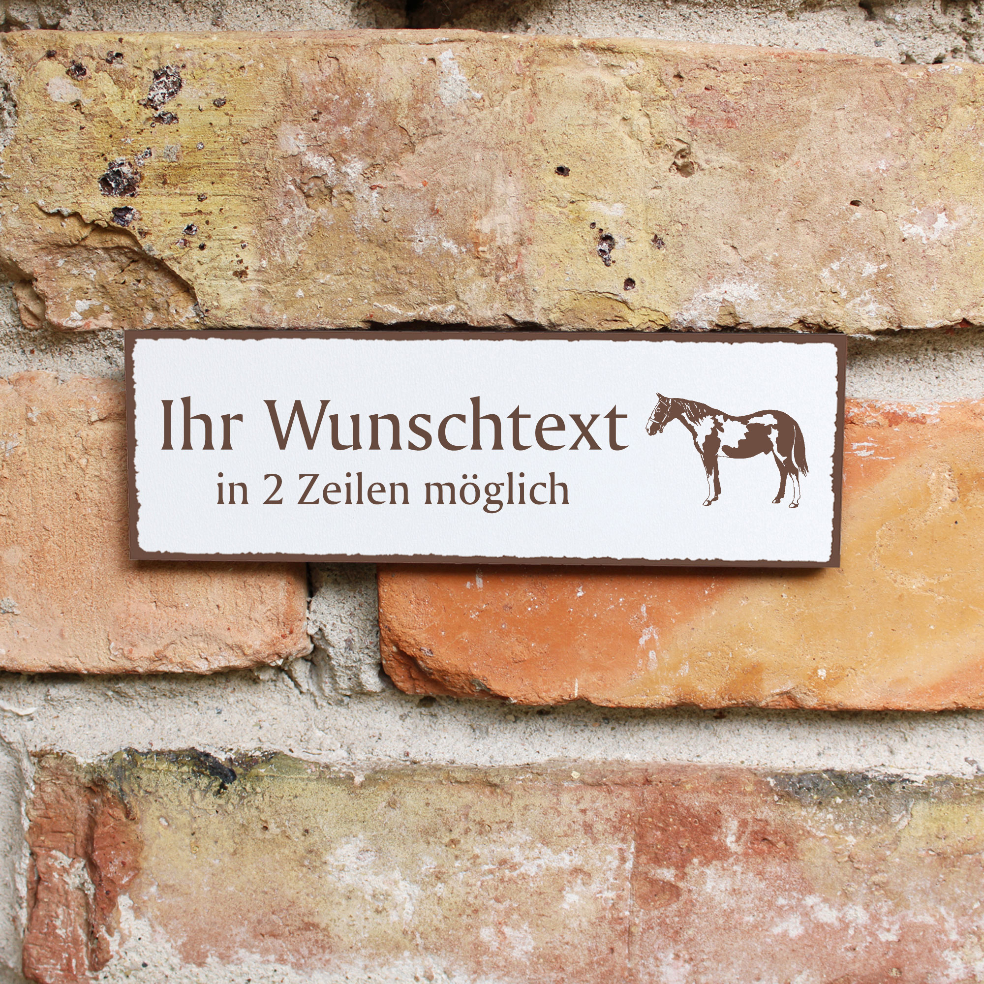 Türschild Schecke Pinto Pferd Namensschild personalisiert mit Gravur - 150mm x 50mm - selbstklebend