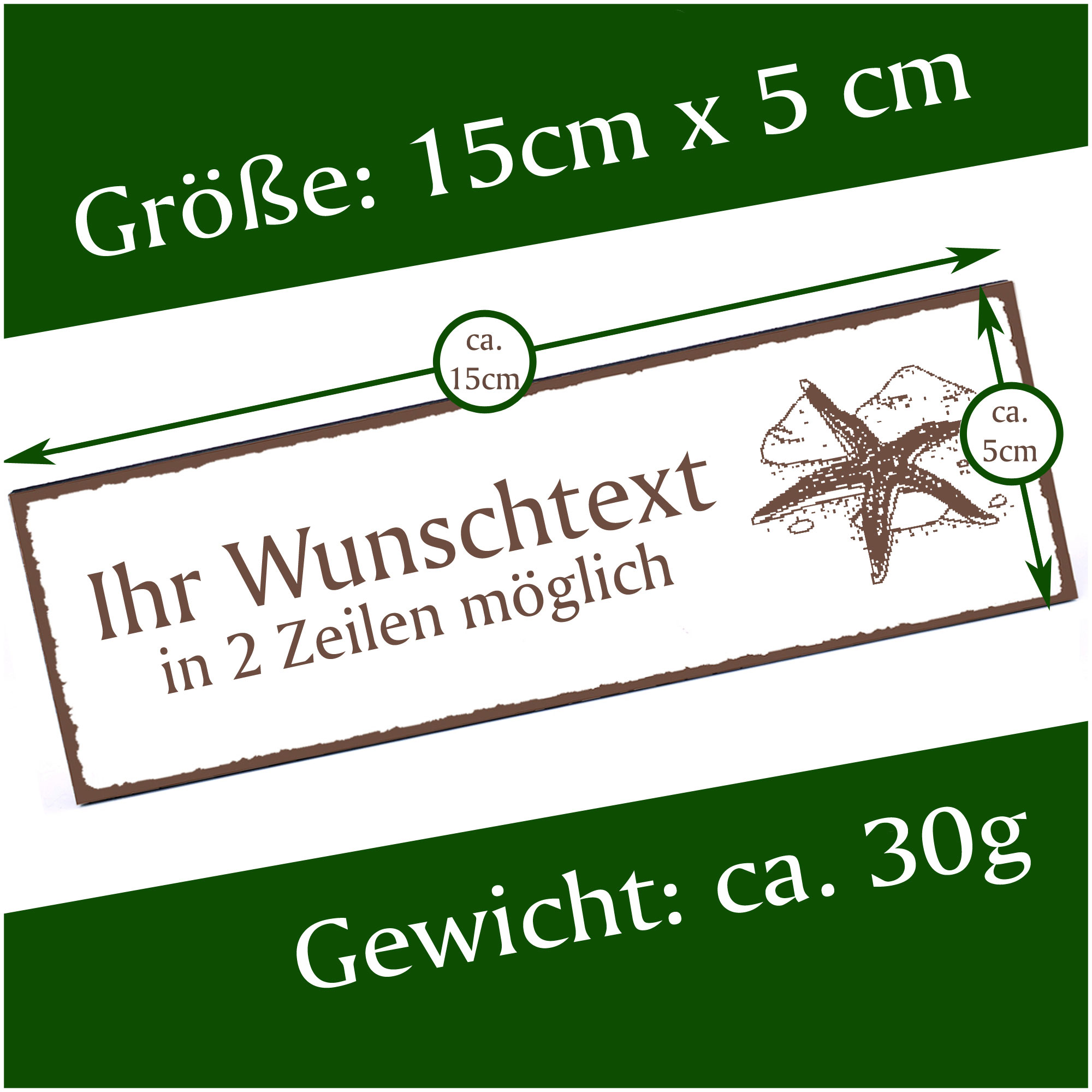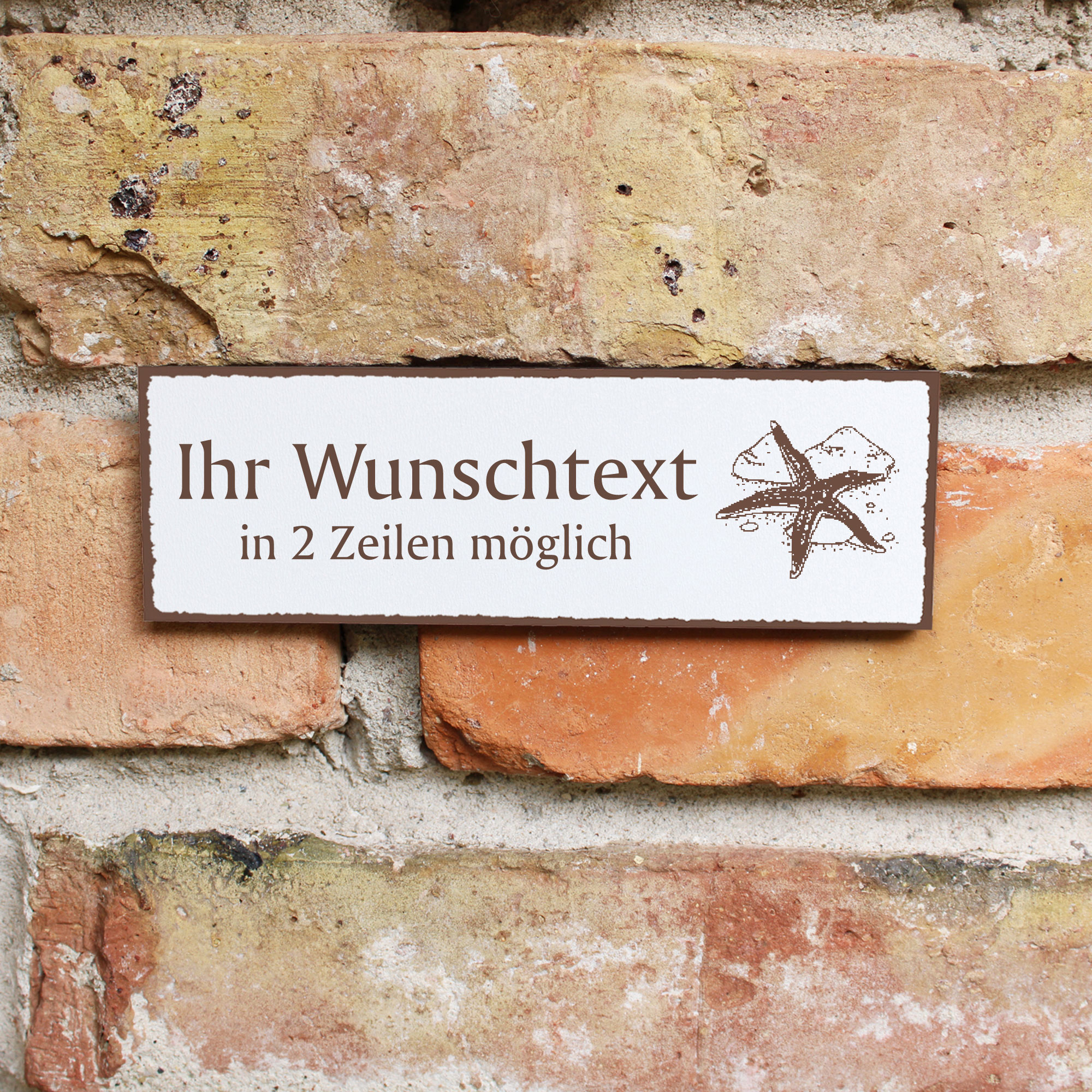 Türschild Seestern Namensschild personalisiert mit Gravur - 150mm x 50mm - selbstklebend