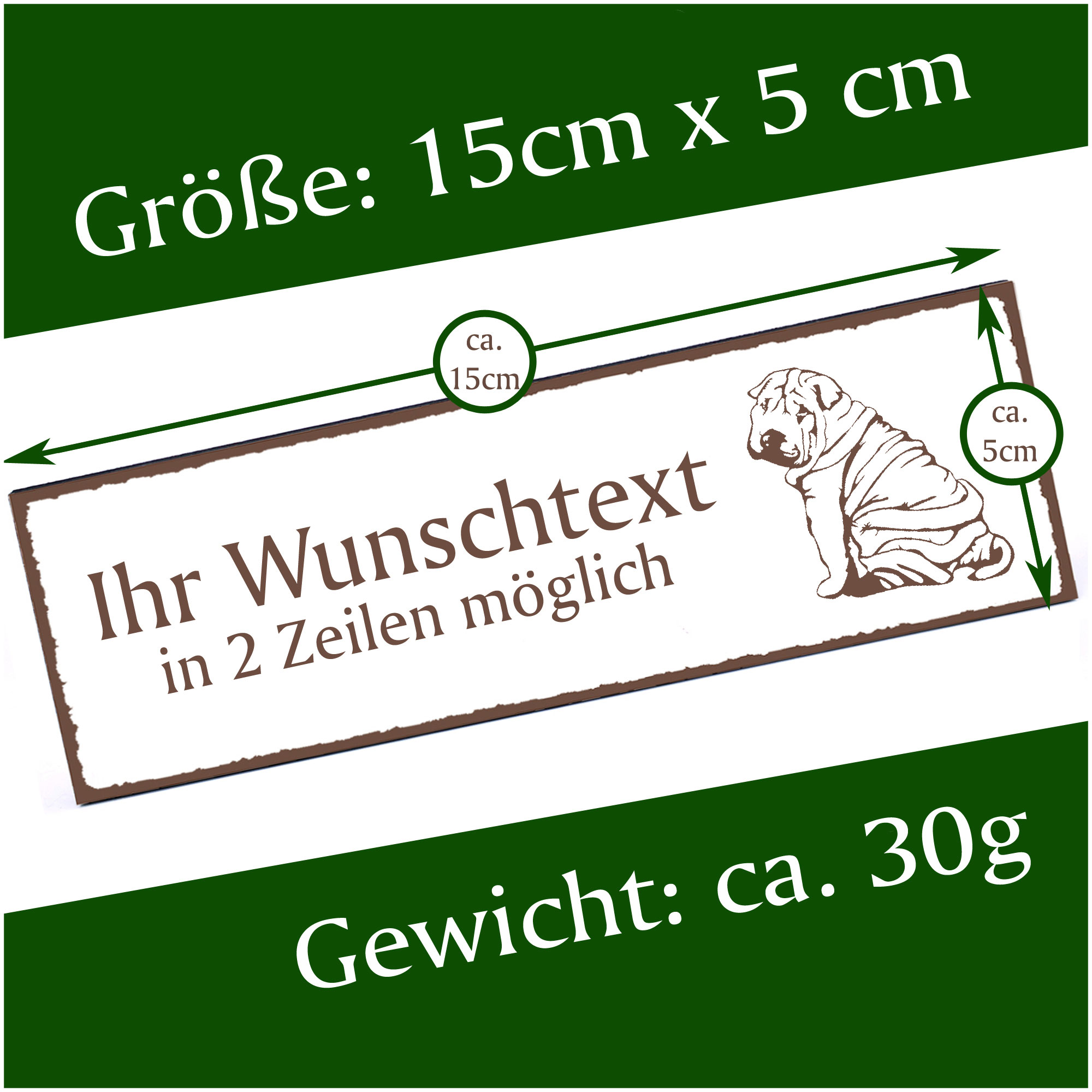Türschild Shar Pei Namensschild personalisiert mit Gravur - 150mm x 50mm - selbstklebend