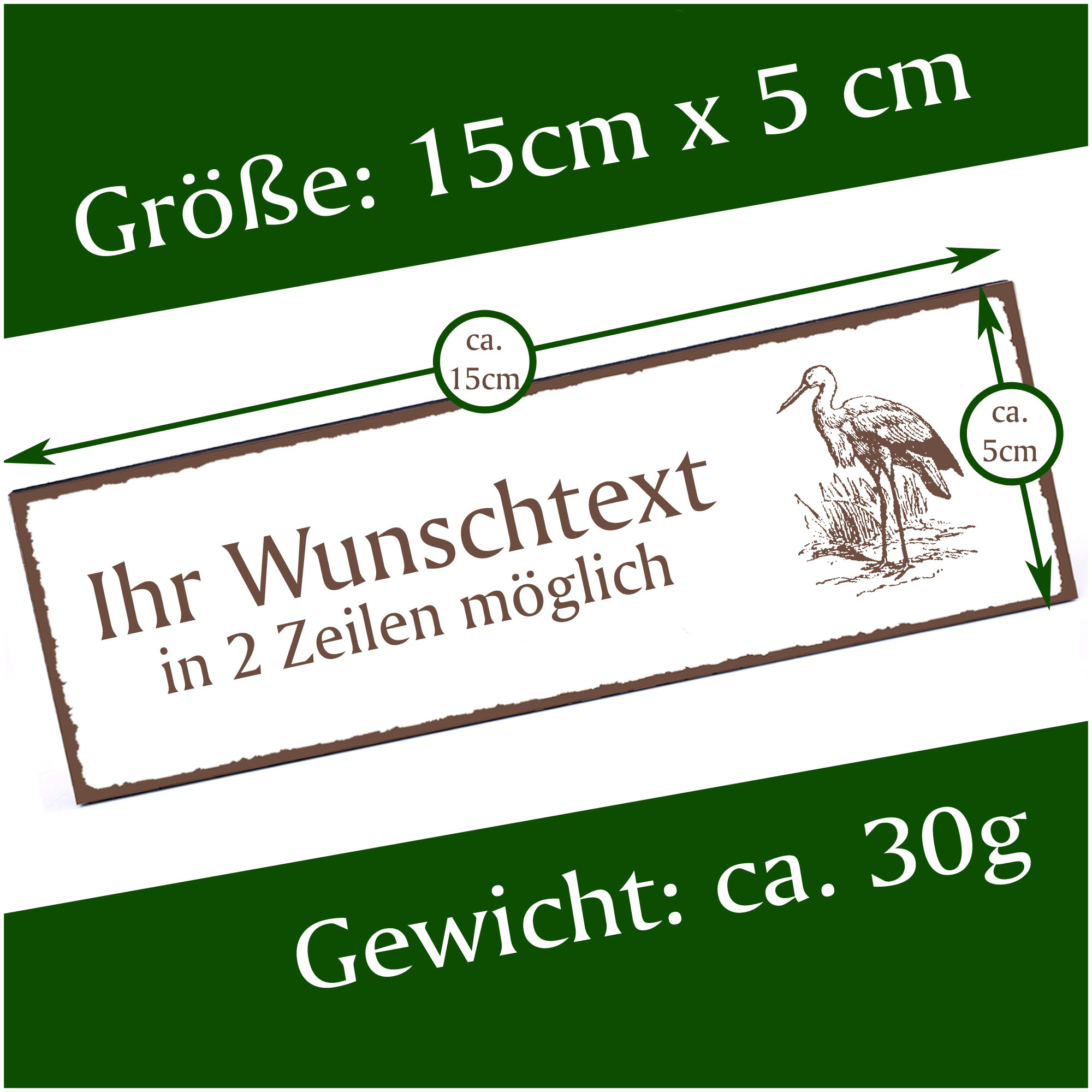 Türschild Storch Namensschild personalisiert mit Gravur - 150mm x 50mm - selbstklebend